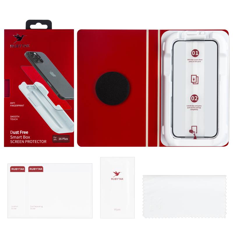 Защитное стекло RUBYTAK iPh 16 Plus Silk Printing с аппликатором