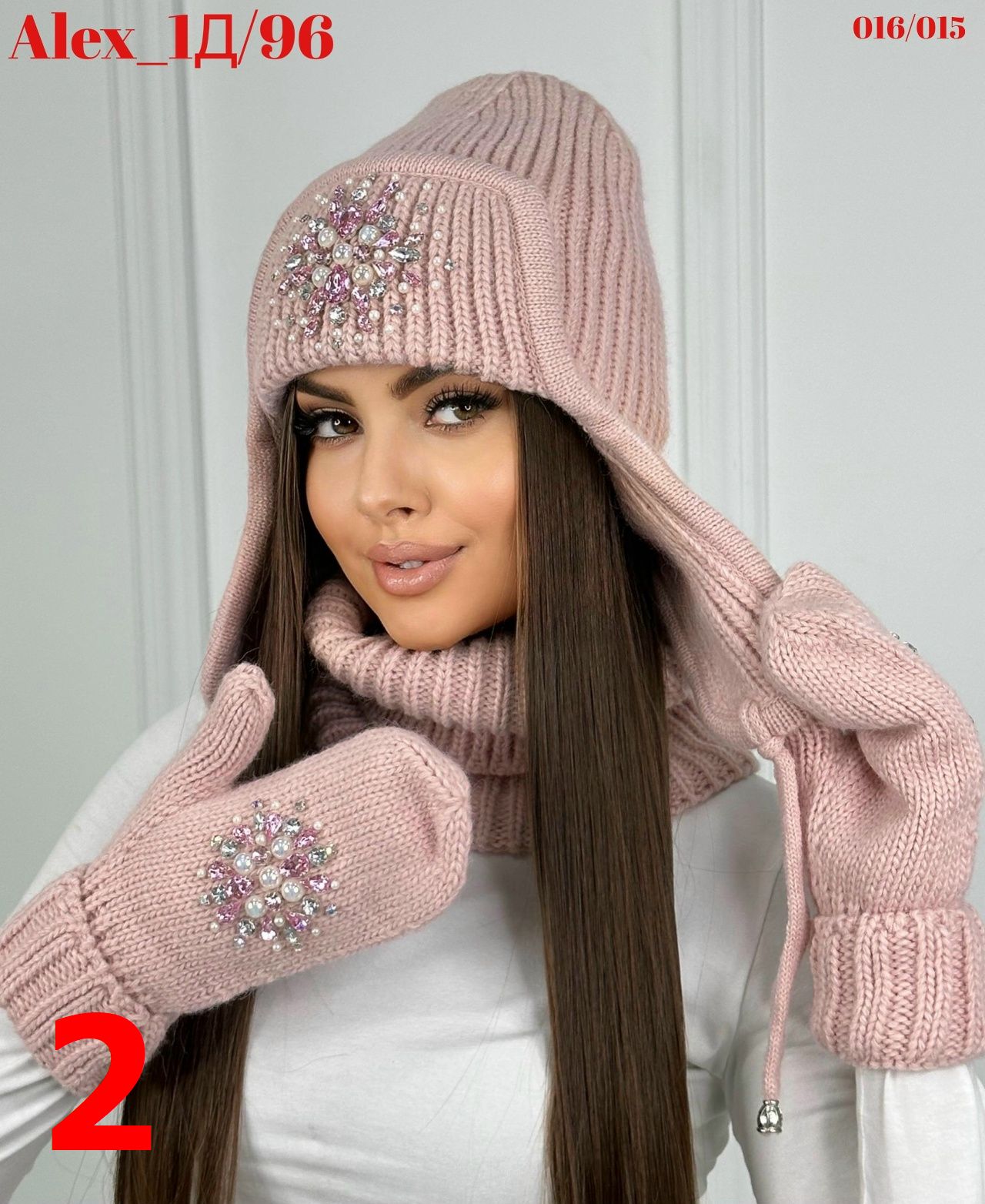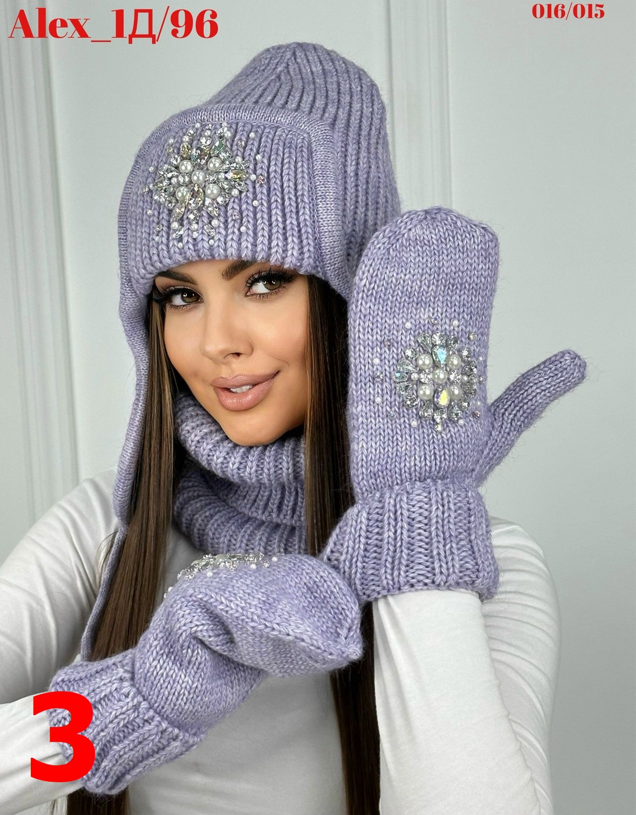 3 в 1 Ушанка на флисе, шарф , варежки 60% шерст + 40% акрил