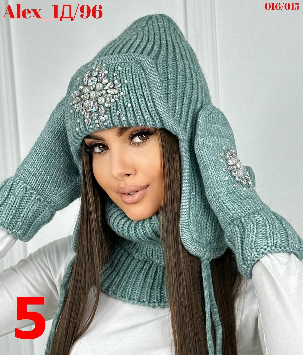 3 в 1 Ушанка на флисе, шарф , варежки 60% шерст + 40% акрил