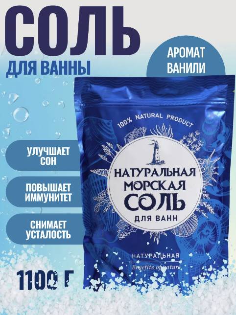 Морская соль натуральная без ароматизаторов, 1100 гр