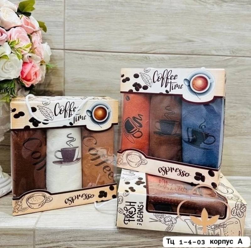 Без выбора!!! Подарочный набор 3 в 1 'Кофе'. 3 полотенца, 25*25 см. Микрофибра