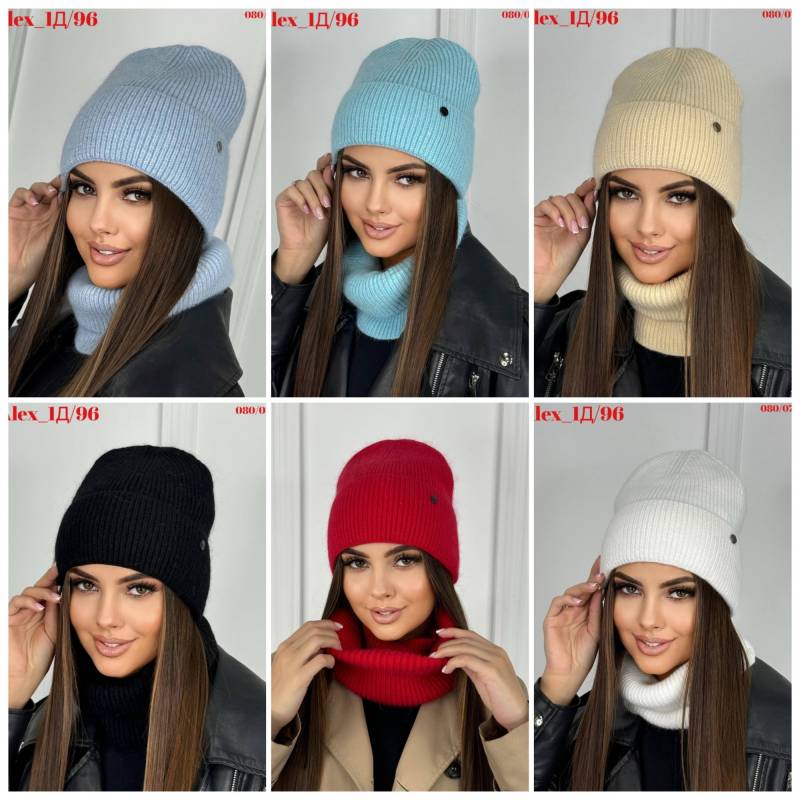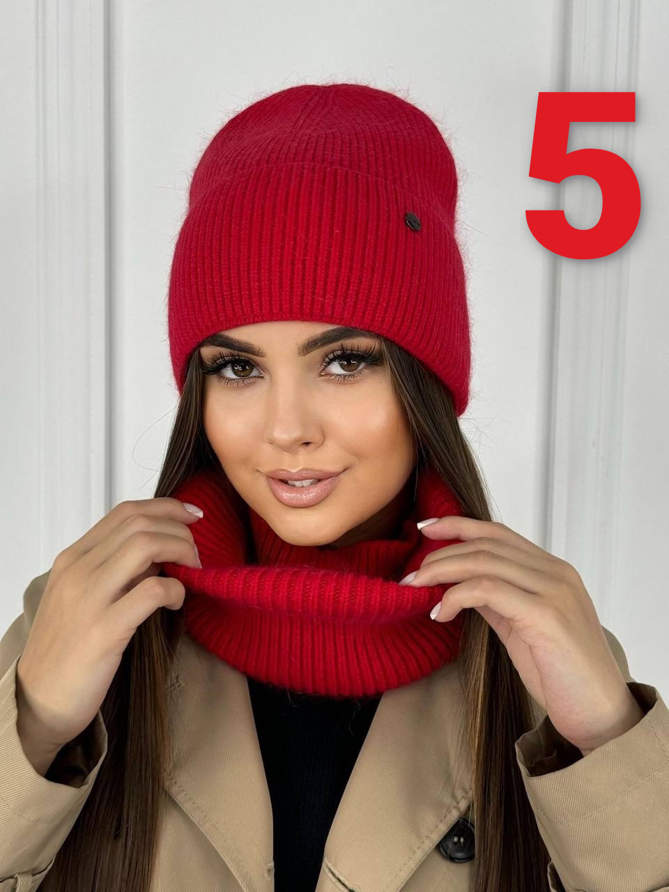 Комплект 2 в 1. Шапка с отворотом + Снуд 52% Ангора + 18% шерсть + 30% Акрил