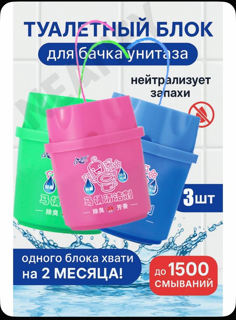 [Набор 3 шт] Туалетный блок для сливного бачка / средство для туалета освежитель и очиститель