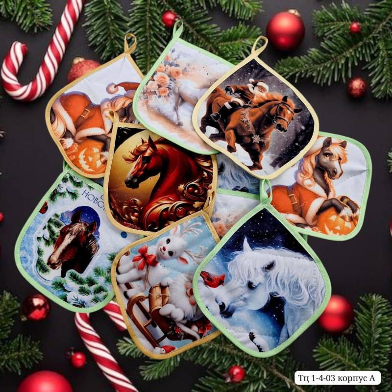 [1 шт] Прихватка новогодняя с символом лошади 18х18 см!