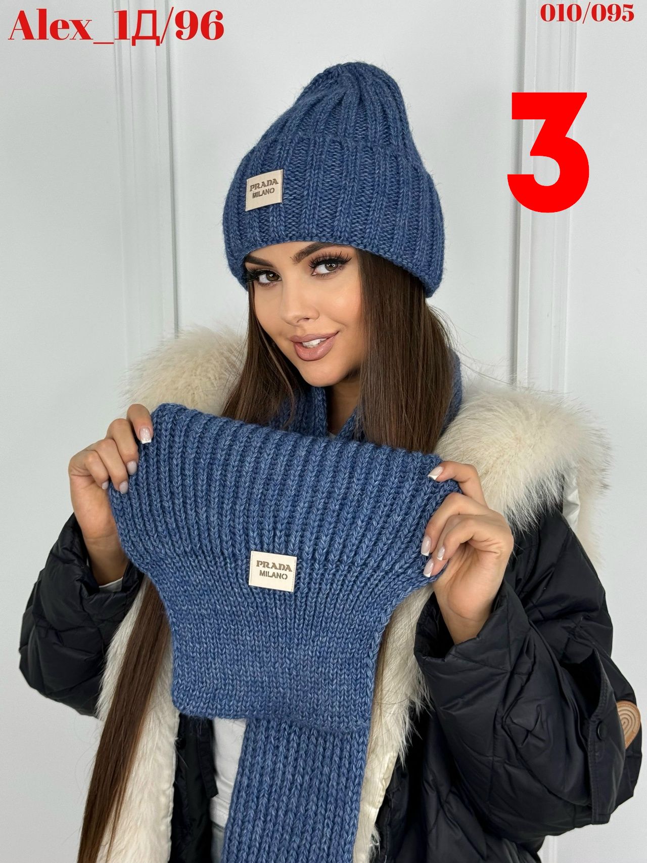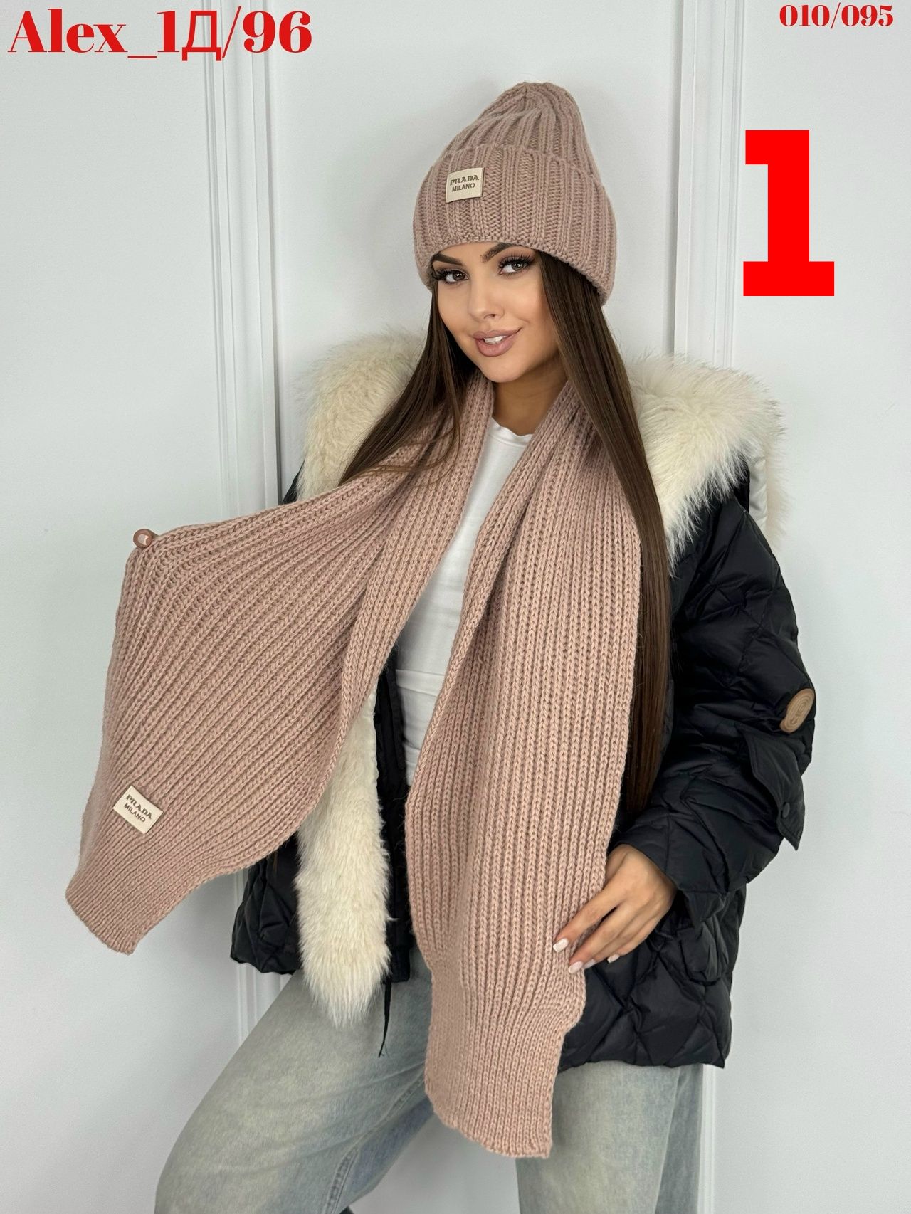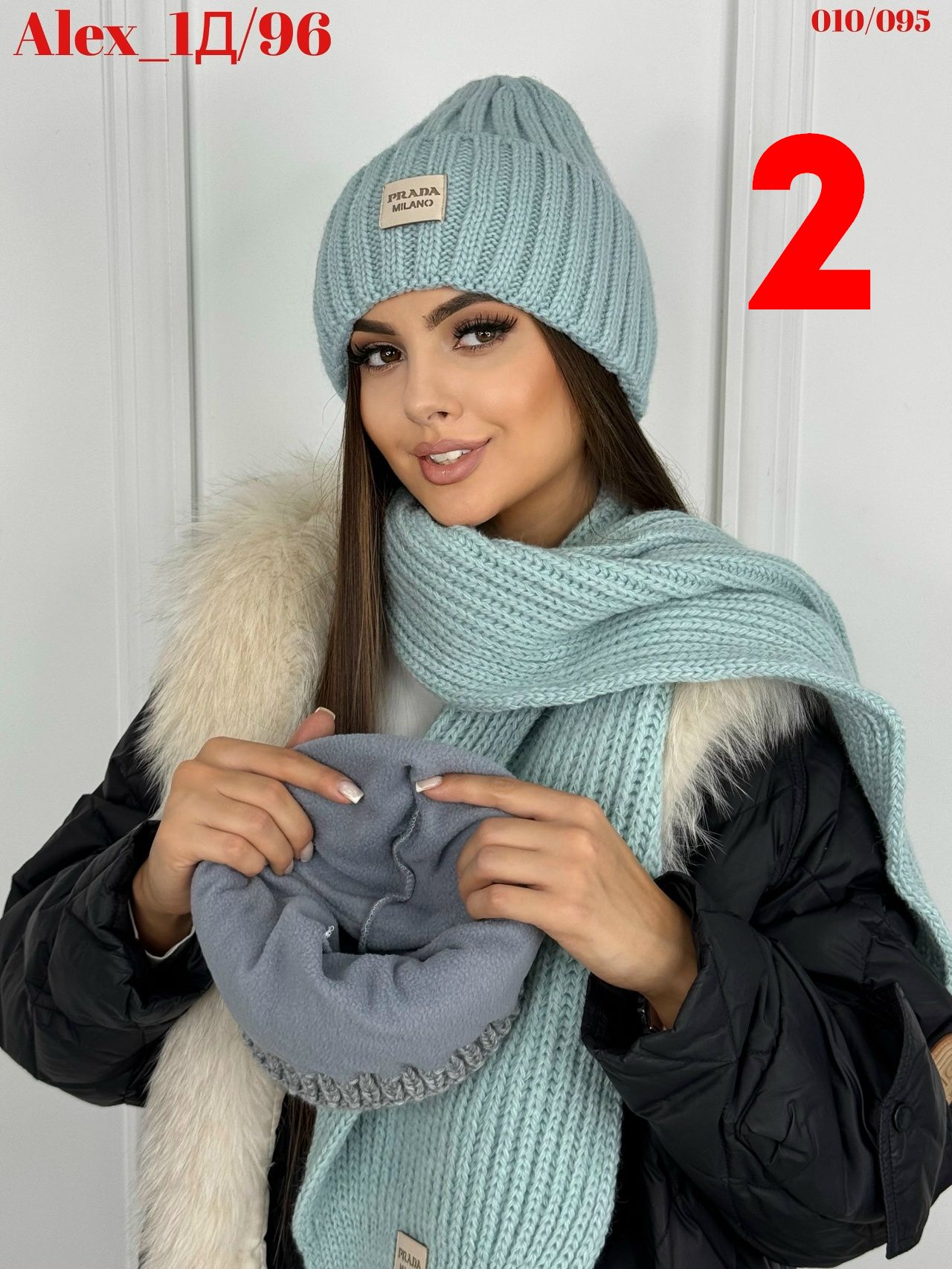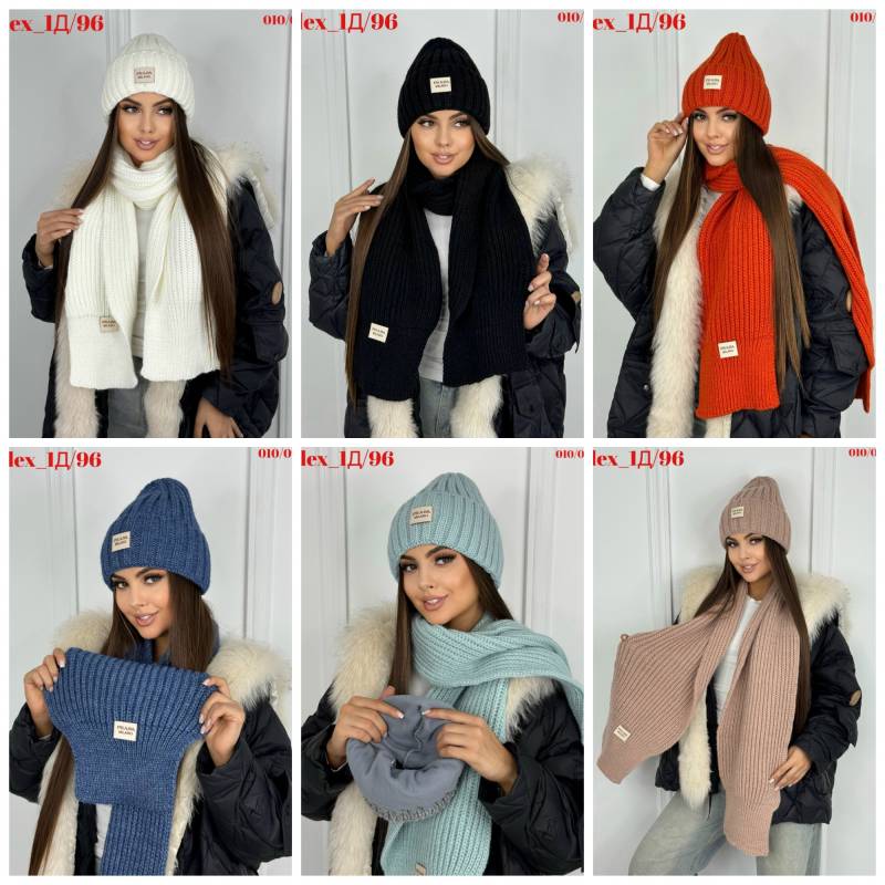 Комплект 2 в 1. Шапка с отворотом на флисе + шарф 50%шерсть + 50%Акрил