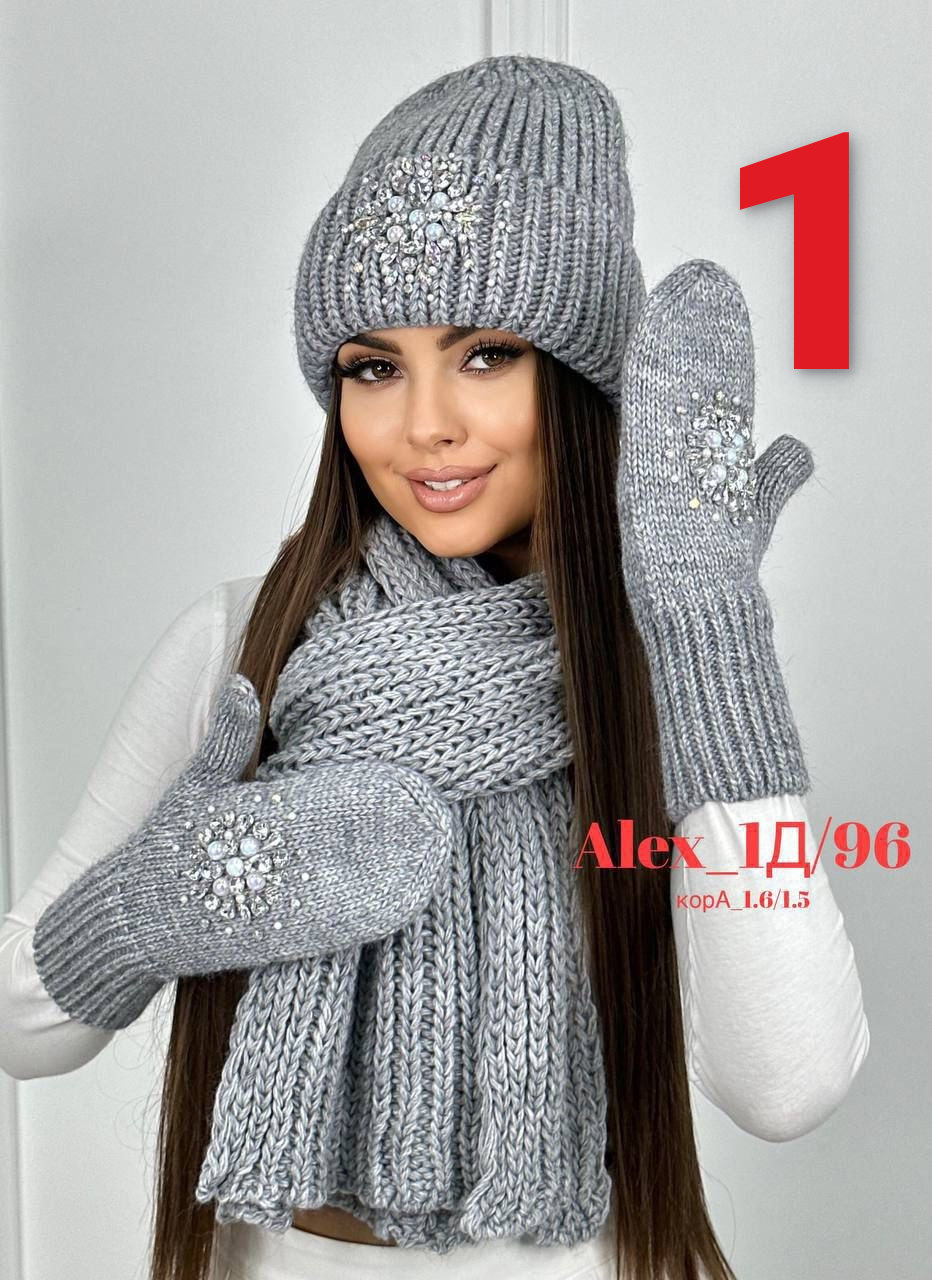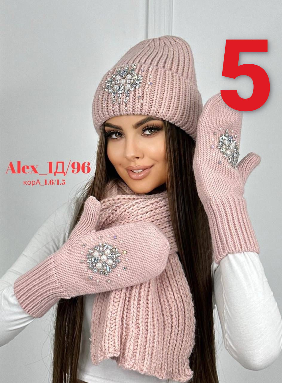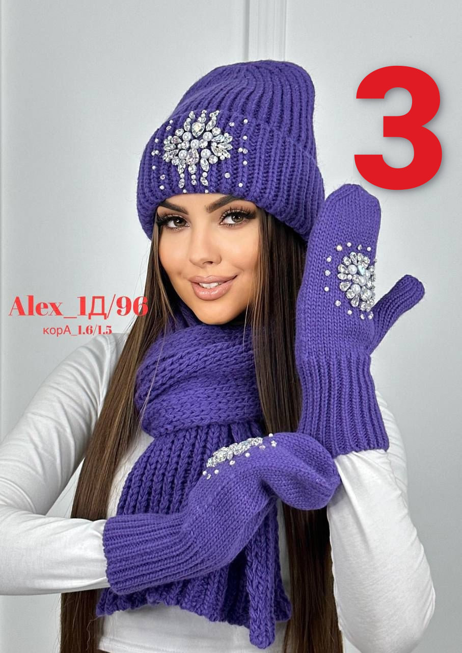 Комплект 3 в 1. Шапка с отворотом + варежки + шарф 60% шерст + 40% акрил