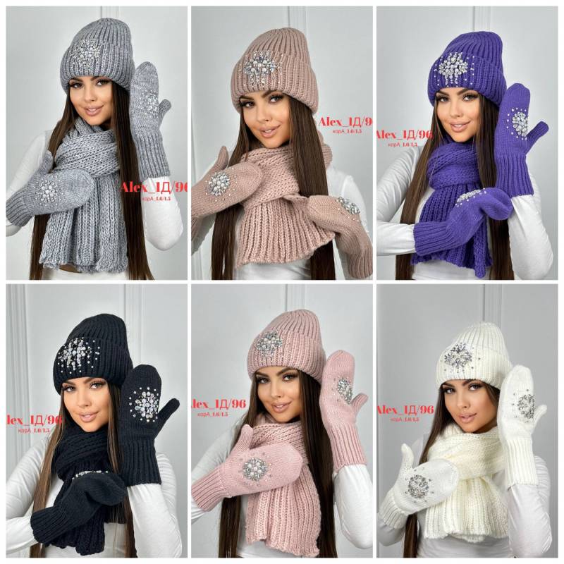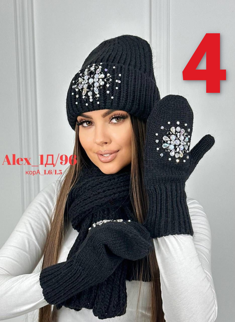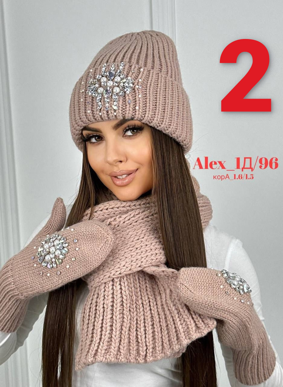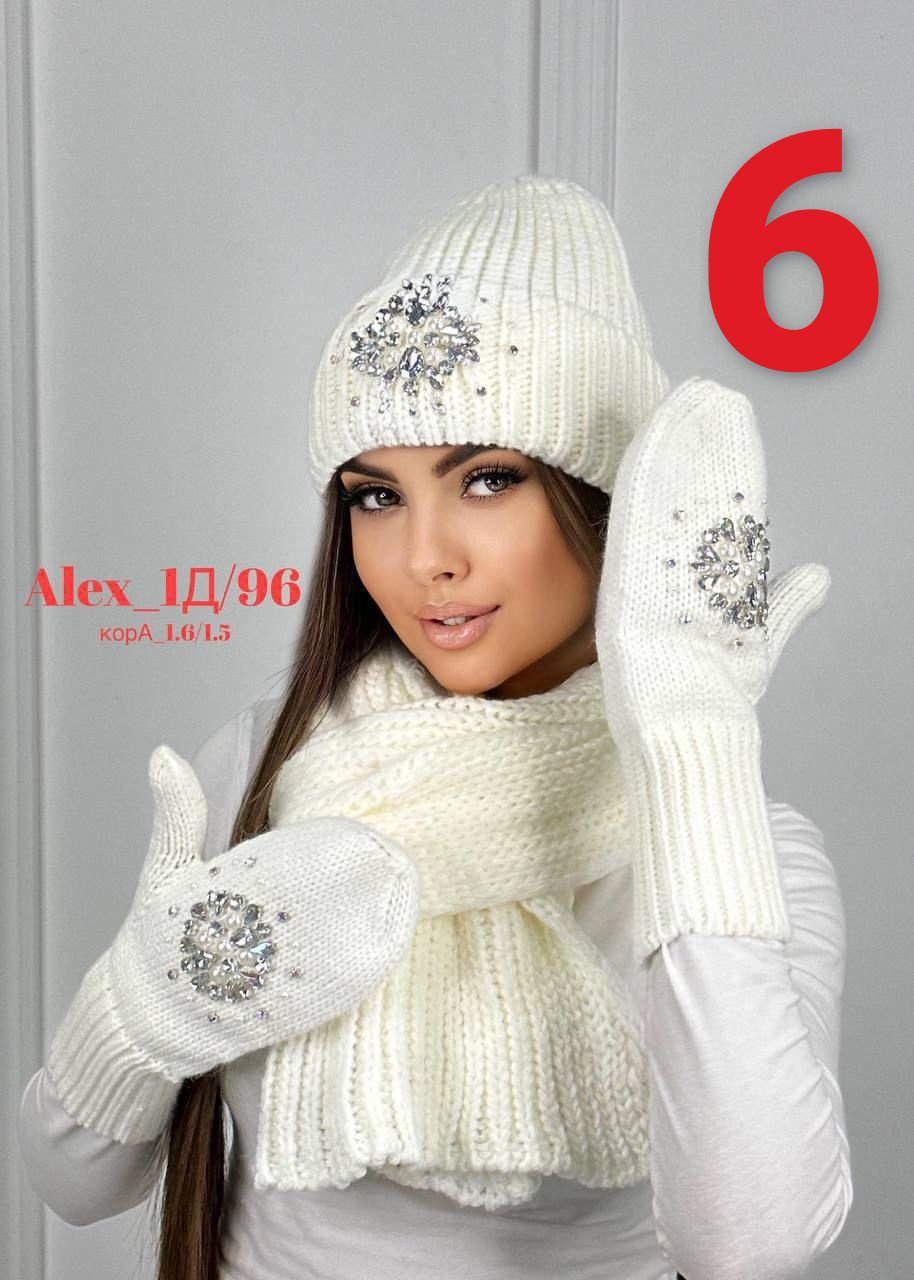 Комплект 3 в 1. Шапка с отворотом + варежки + шарф 60% шерст + 40% акрил