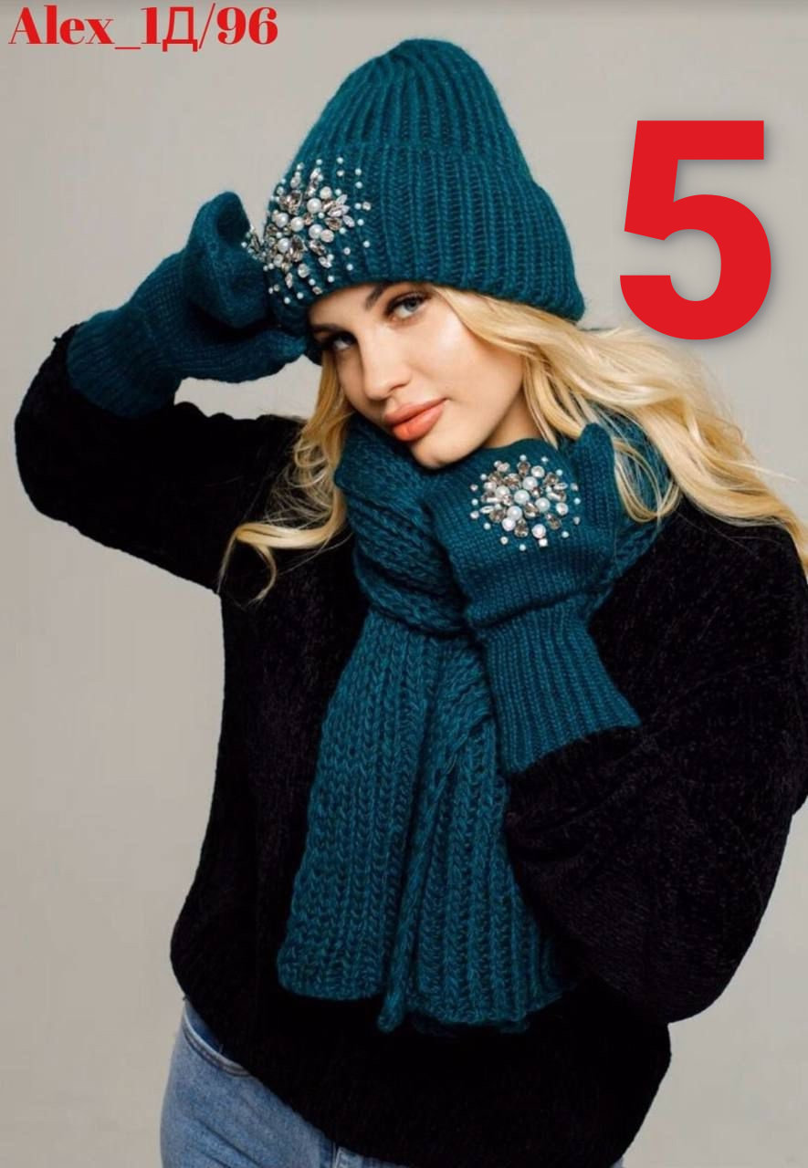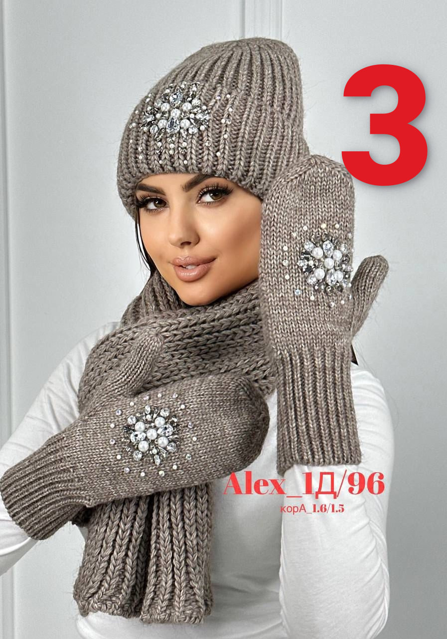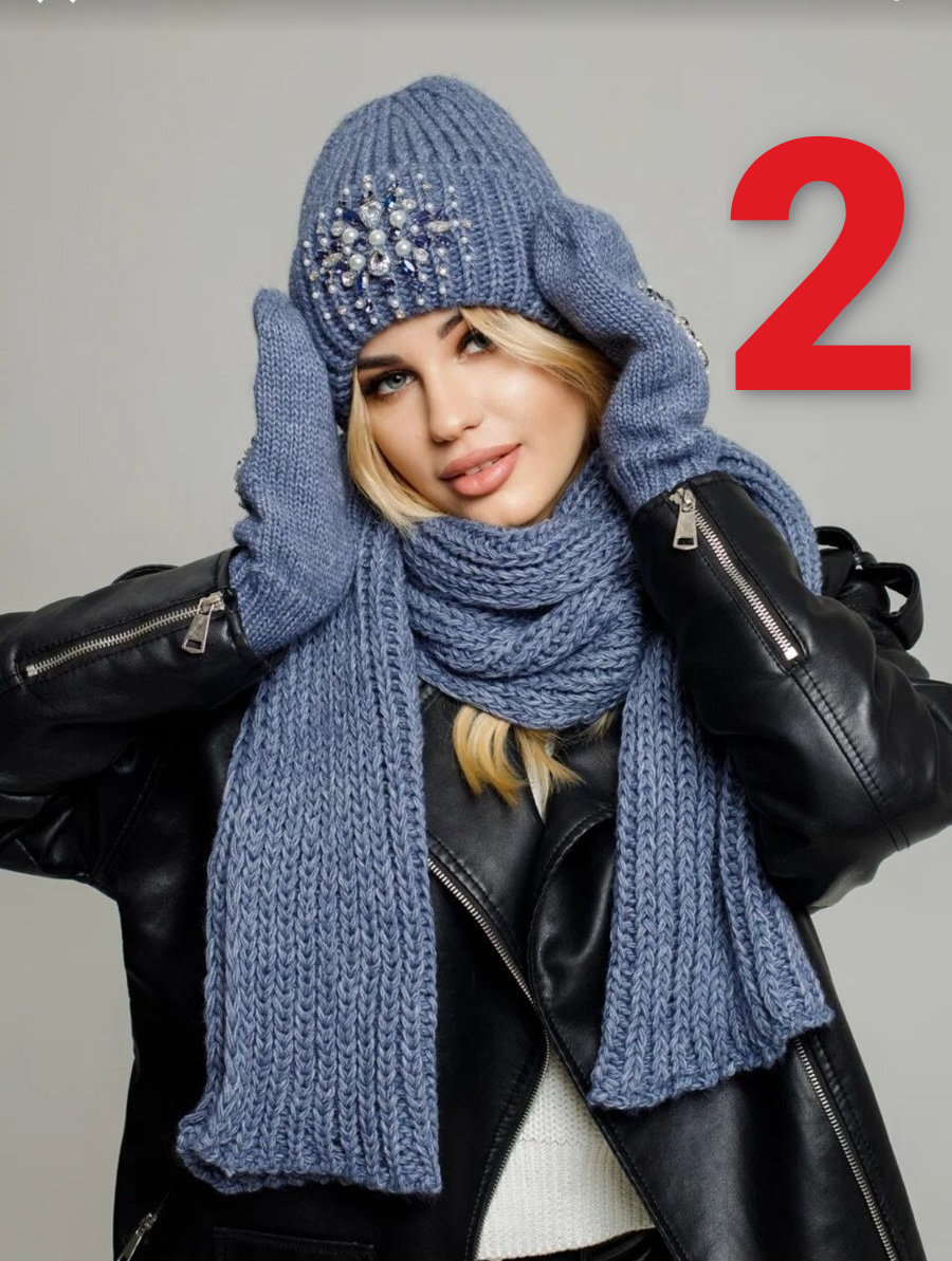 Комплект 3 в 1. Шапка с отворотом + варежки + шарф 60% шерст + 40% акрил