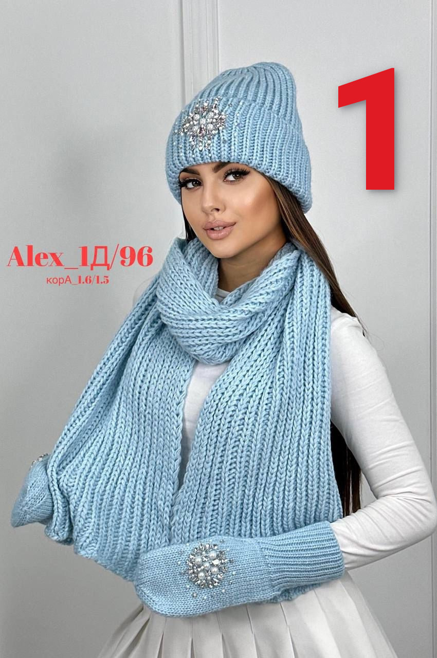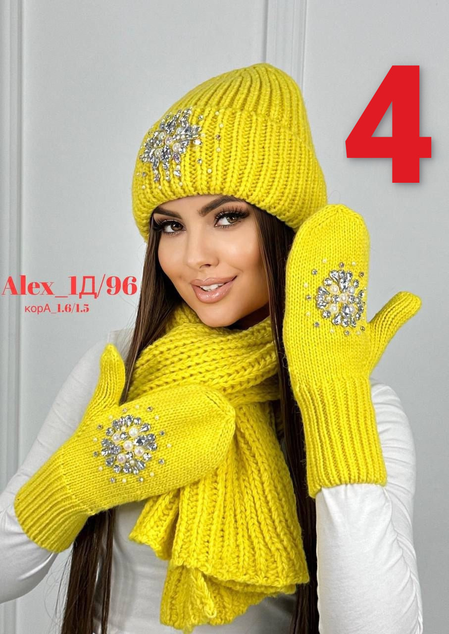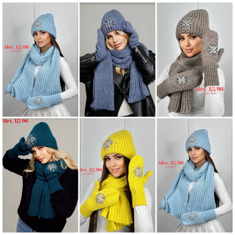 Комплект 3 в 1. Шапка с отворотом + варежки + шарф 60% шерст + 40% акрил