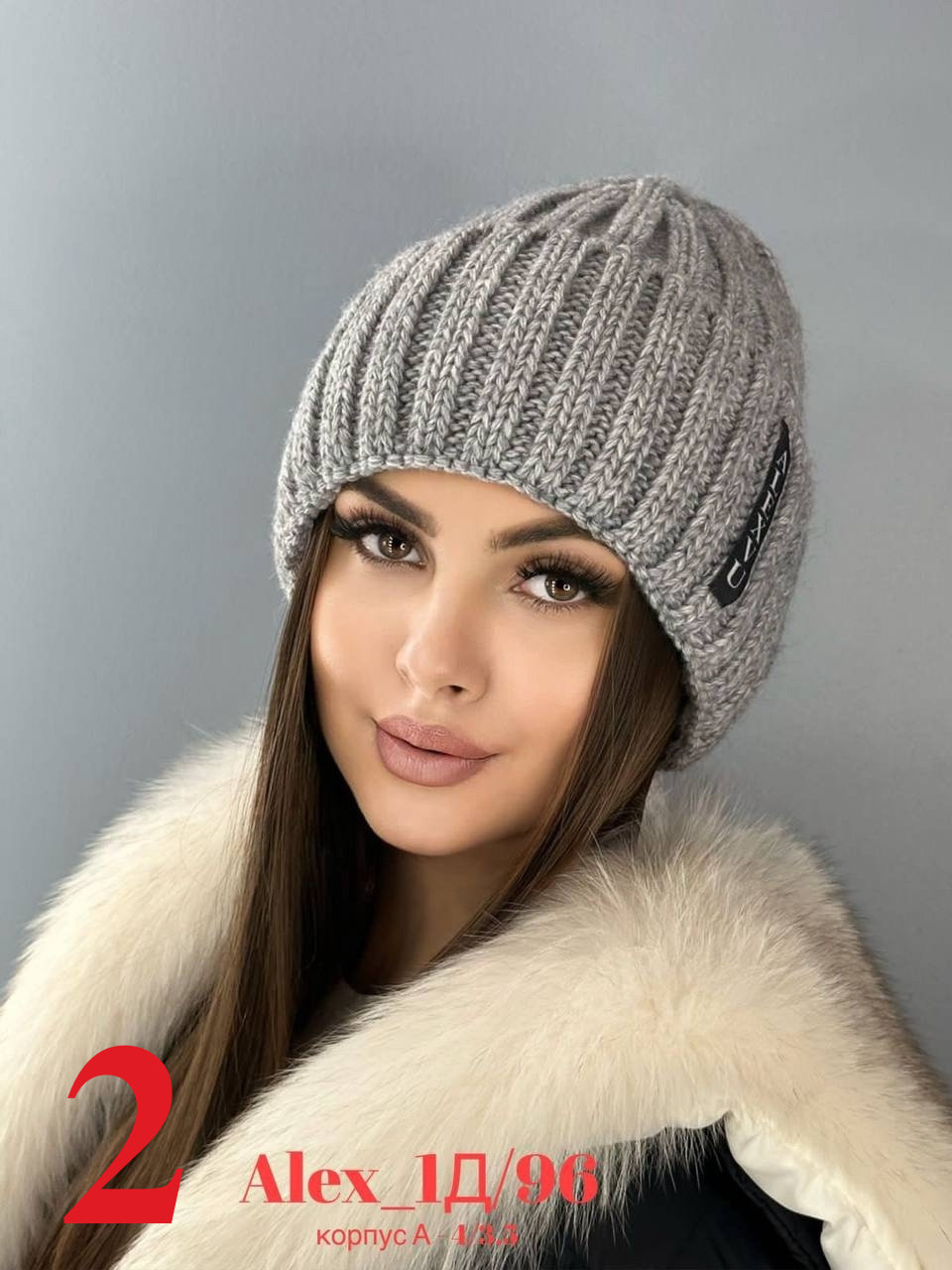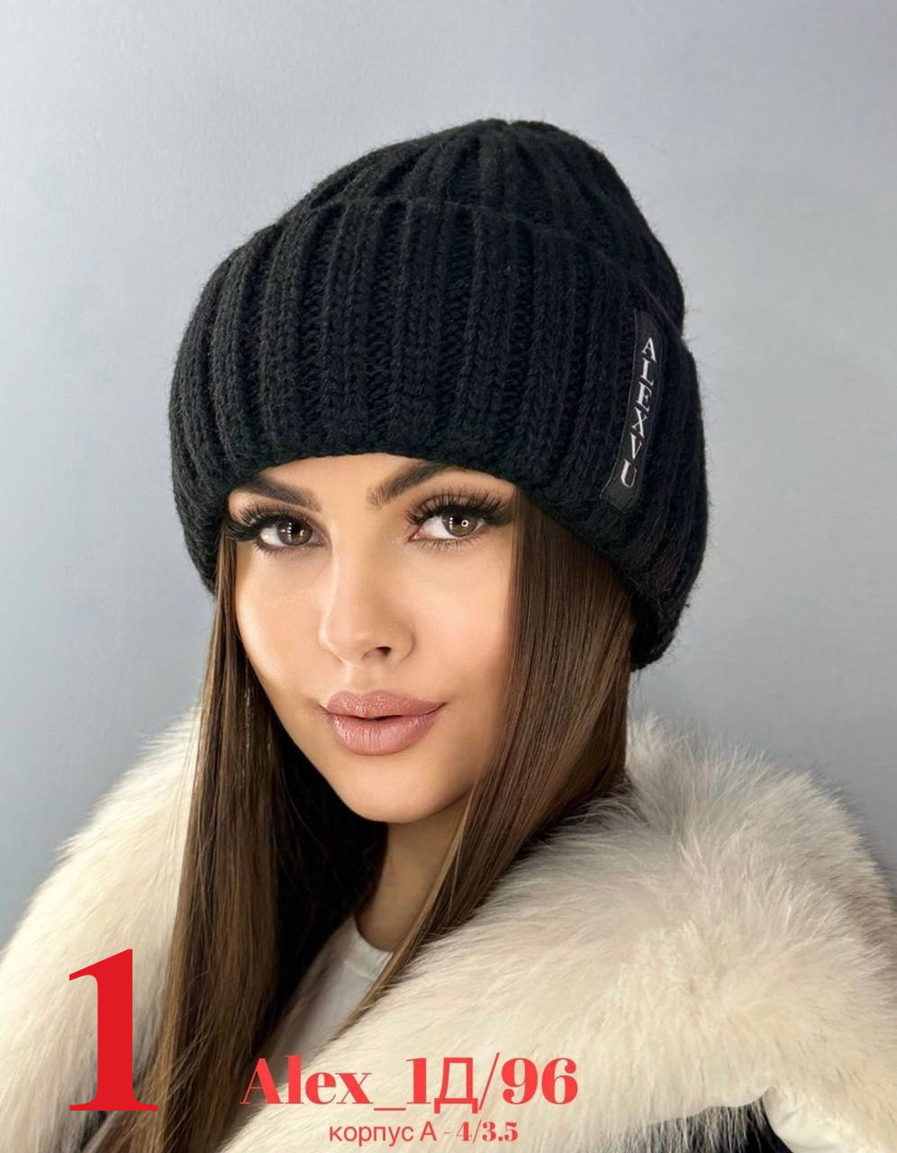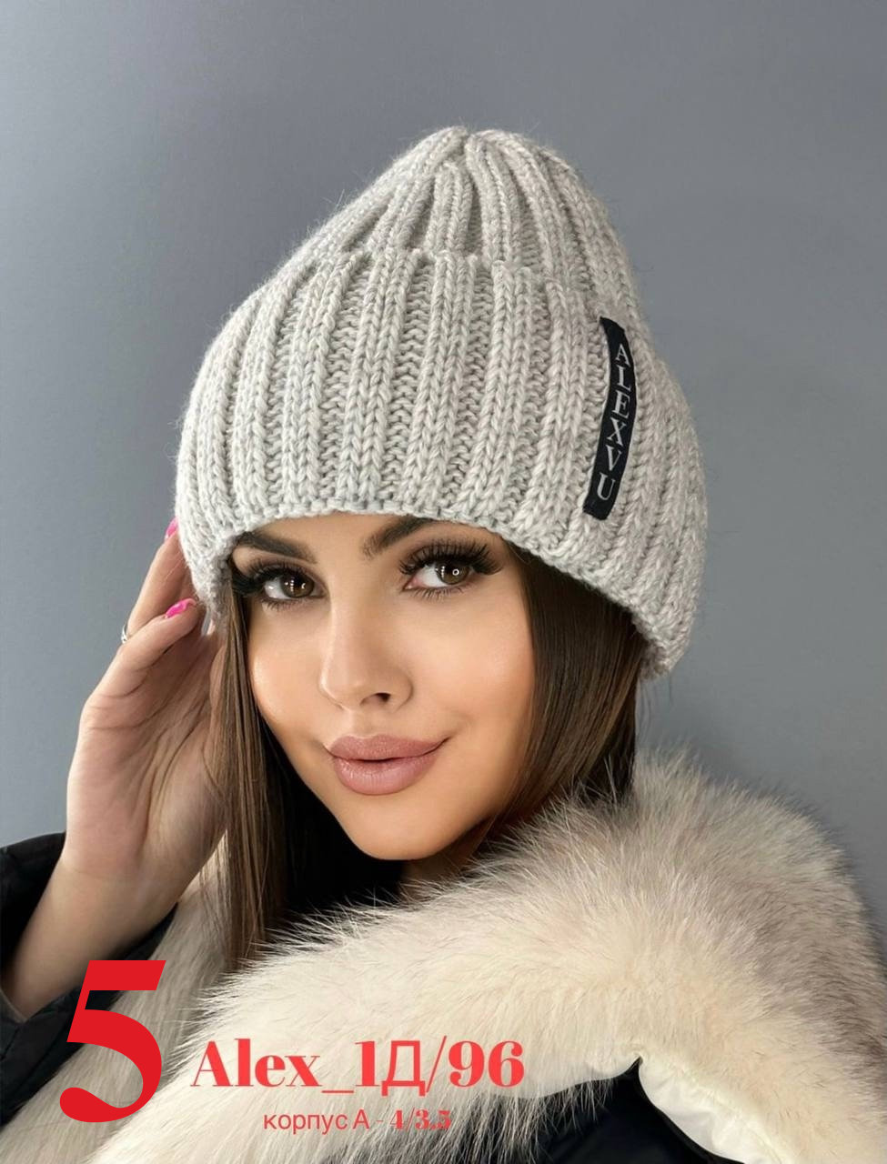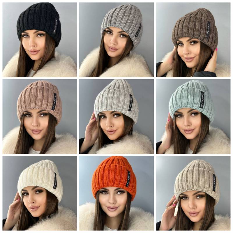 Зимняя женская шапка с отворотом на флисе 50% шерсть + 50% Акрил