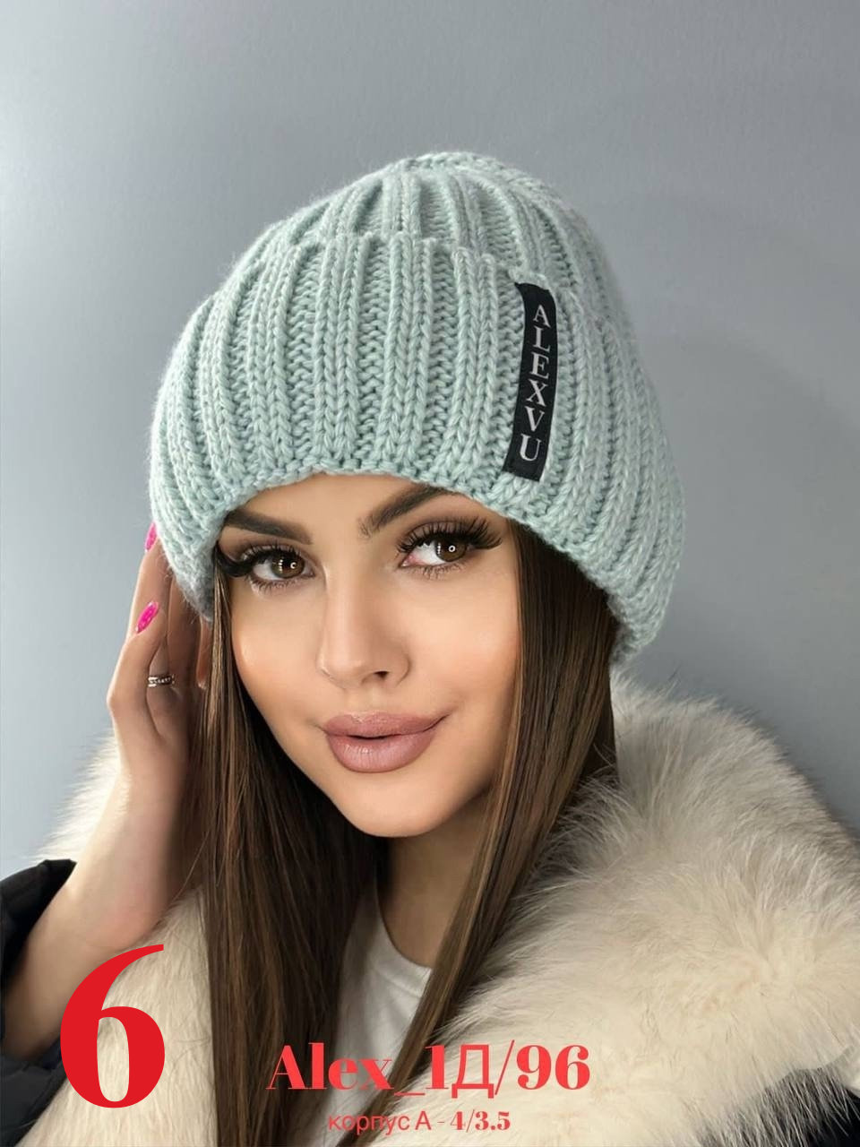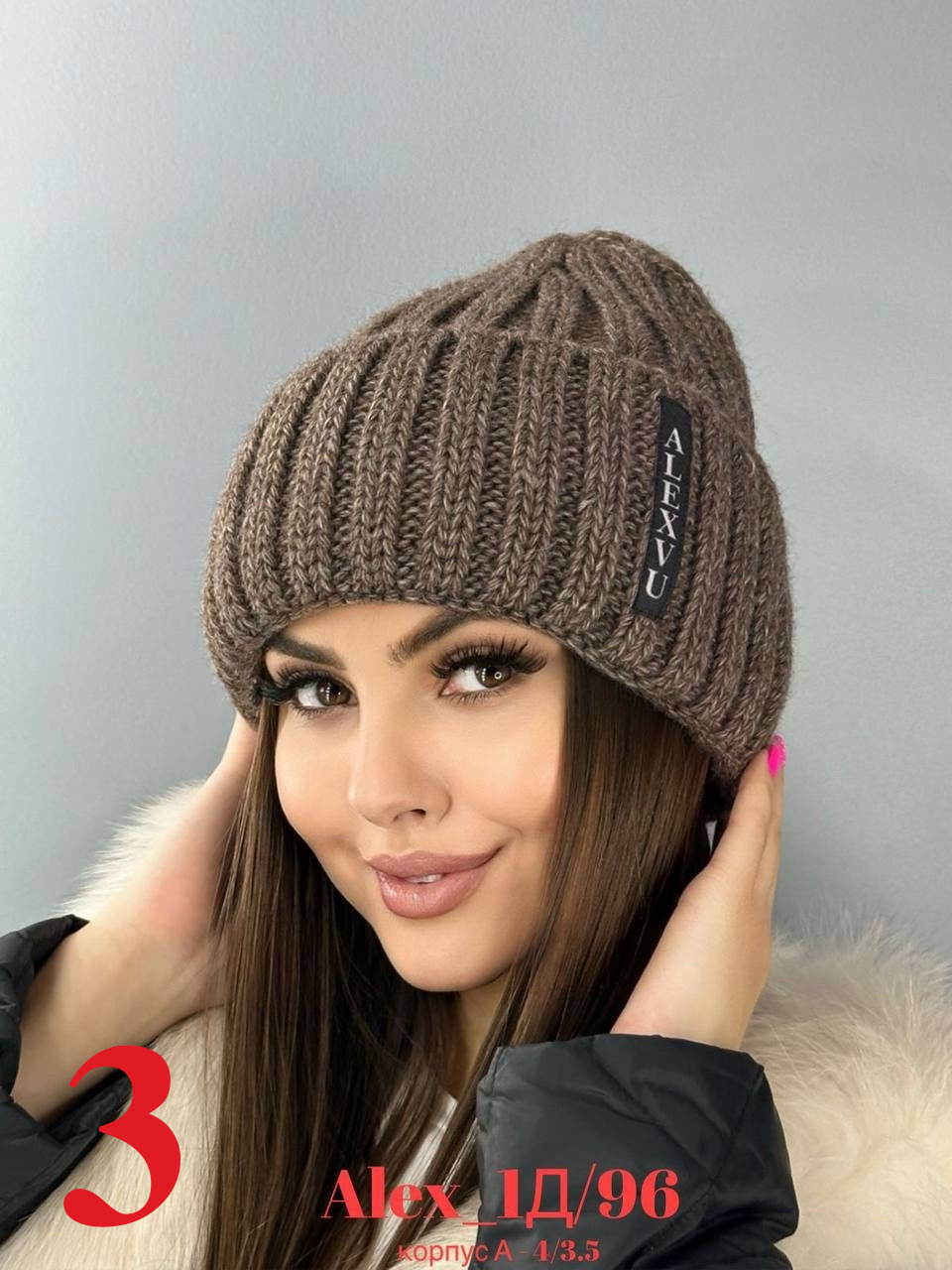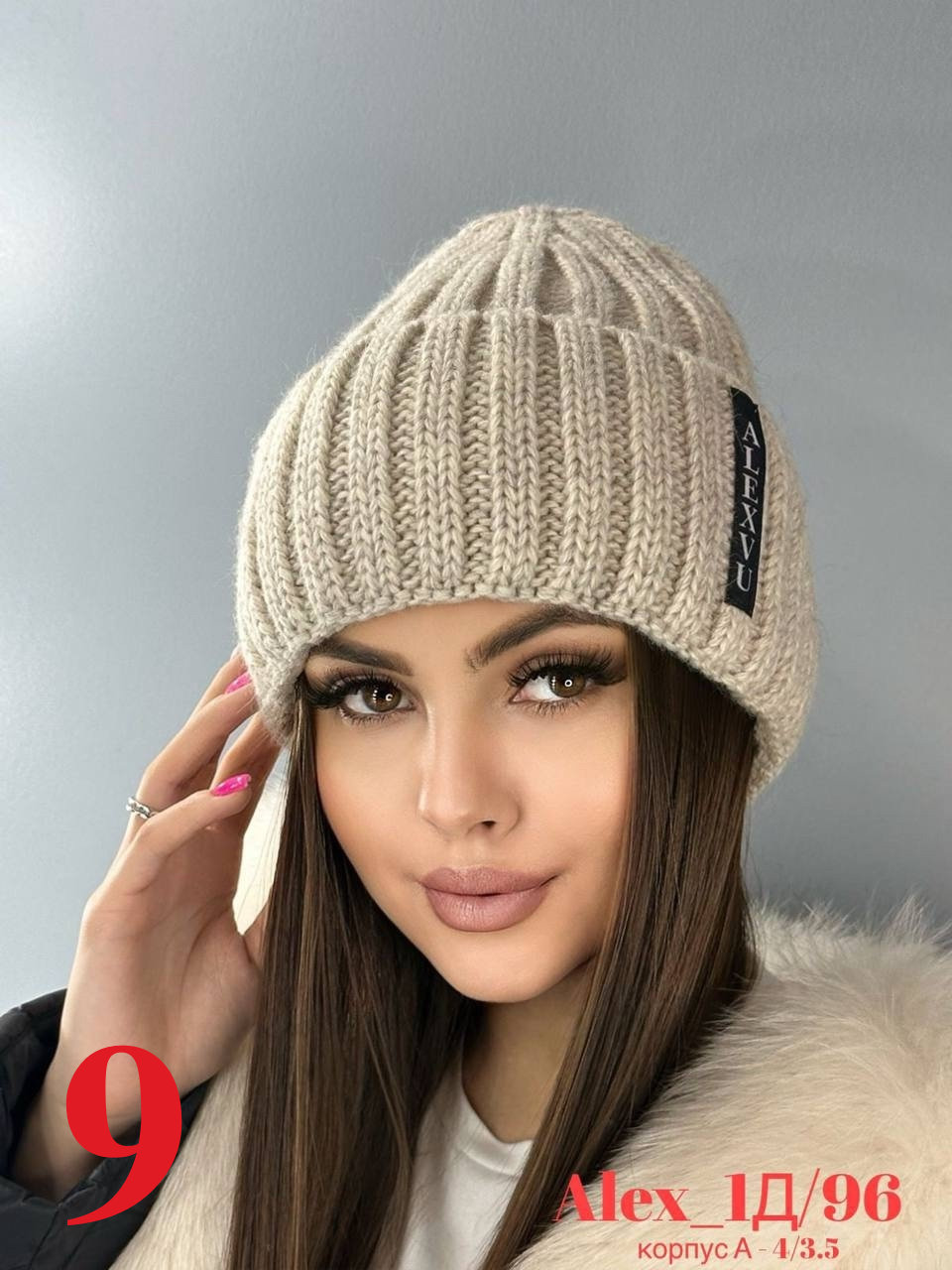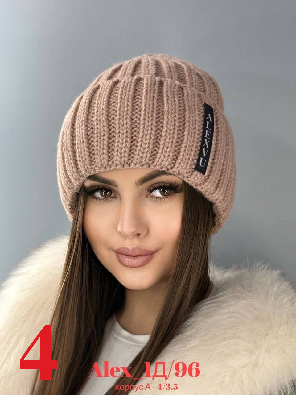 Зимняя женская шапка с отворотом на флисе 50% шерсть + 50% Акрил