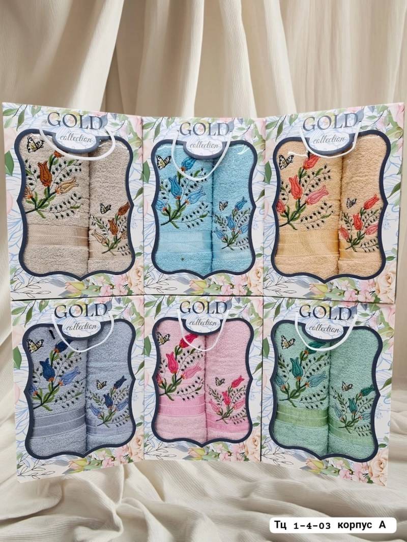 Без выбора!!! 2 махровых полотенеца в коробке. Размеры: 50*90 -1 шт, 70*140 -1 шт.