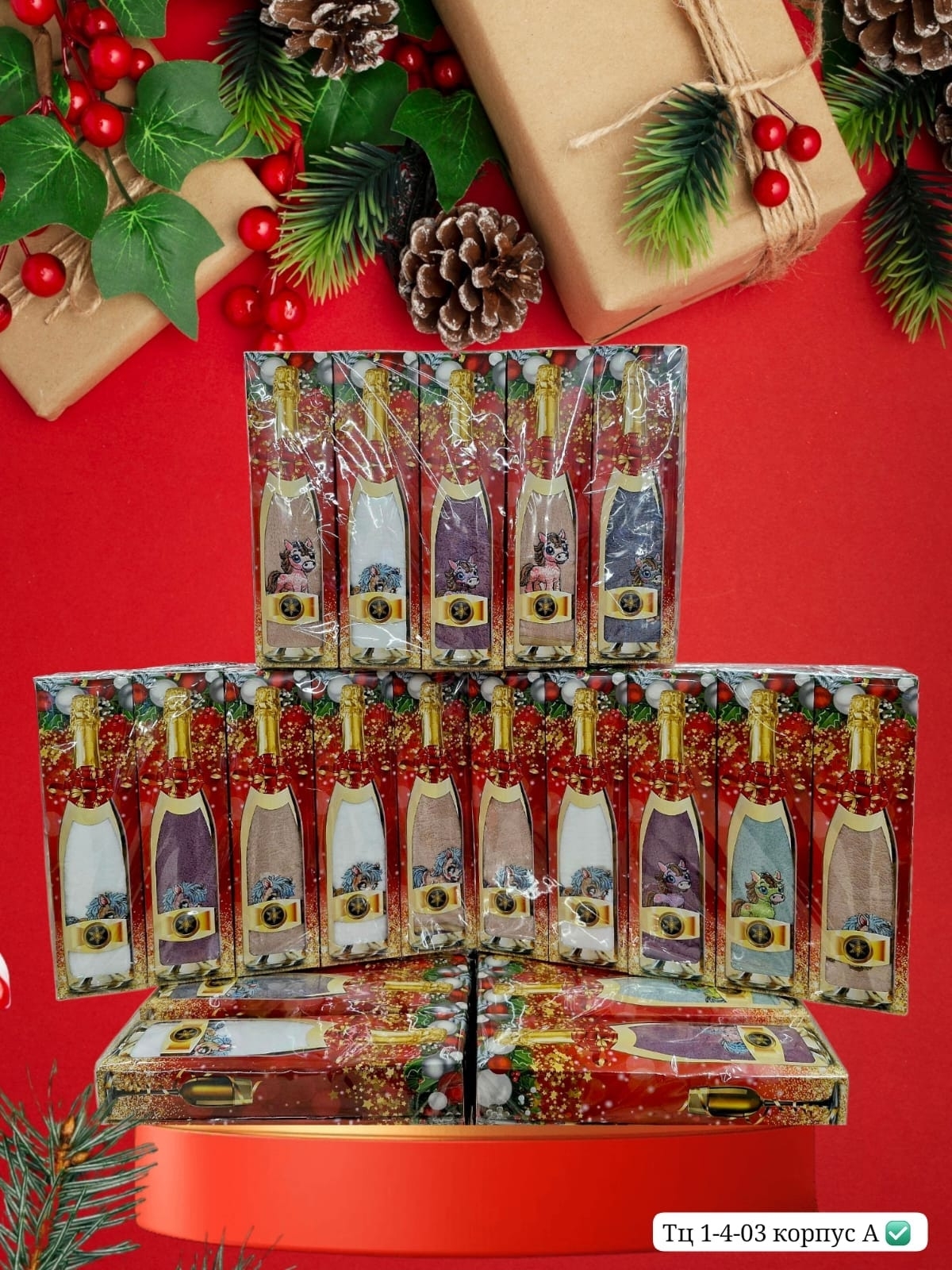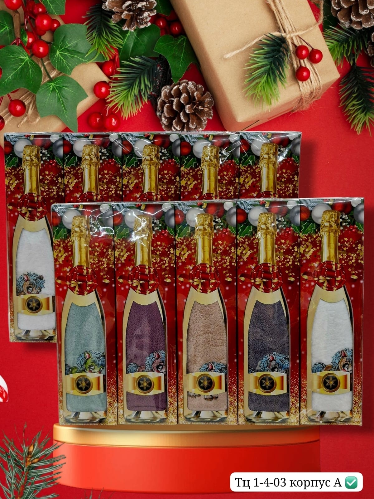 [1 шт] Полотенце из микрофибры 25х50см с лошадкой. Коробка в виде бутылки. Подарок на новый год!!!
