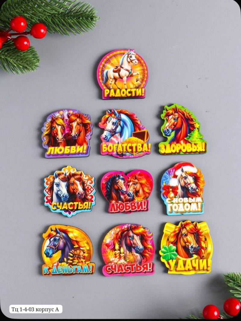[10 шт] Новогодний набор магнитов. Материал: Дерево