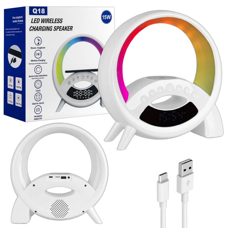 Портативная акустика RGB с беспроводной зарядкой Q18 белый