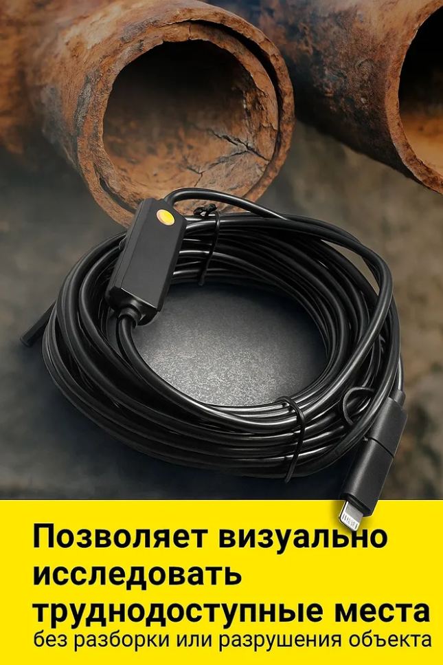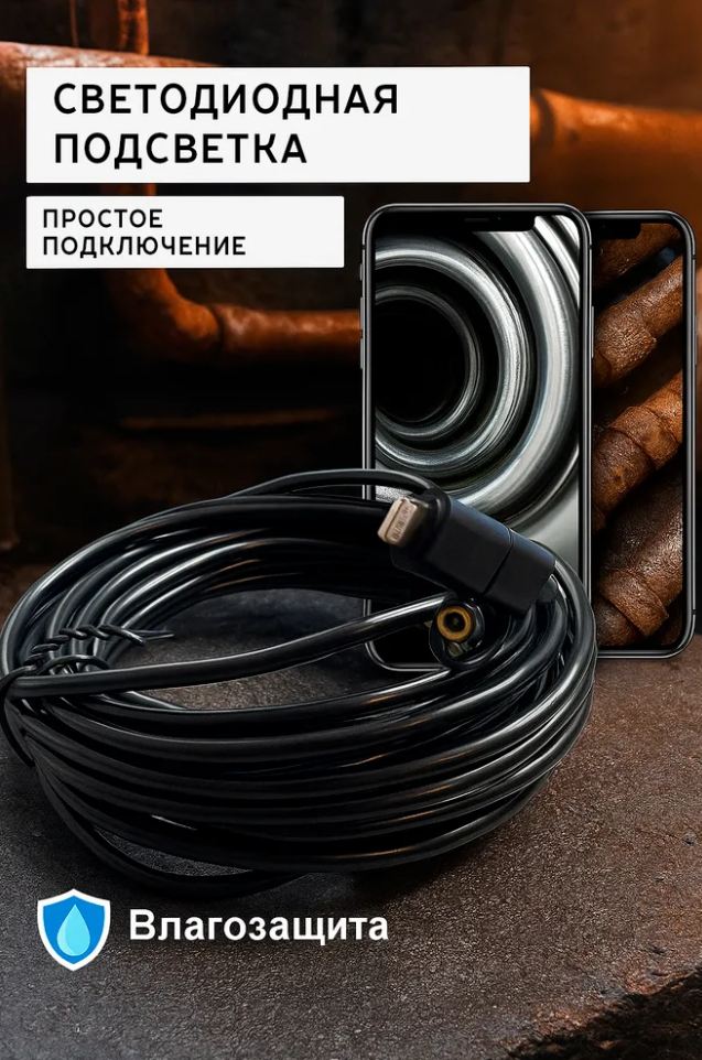 Гибкий эндоскоп водонепроницаемый Type-C на Lightning с подсветкой 5 м. AN112-5