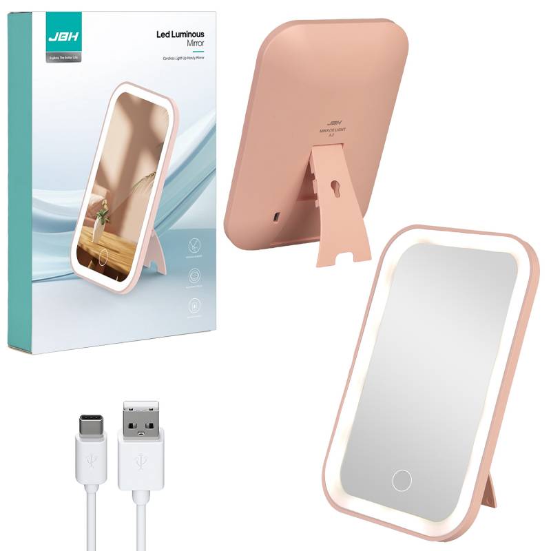 Настольное зеркало для макияжа с подсветкой A2 JBH розовое