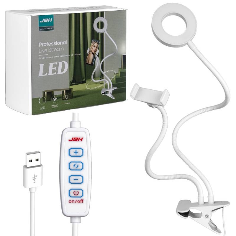 Селфи кольцо с гибким держателем 8,5' SL-10 белое JBH