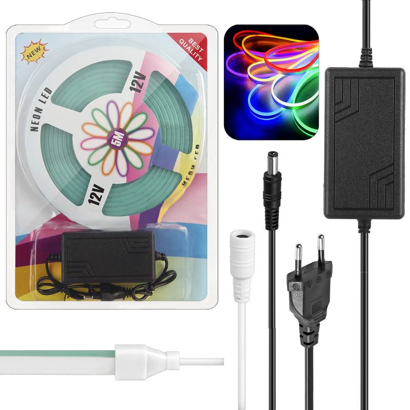 Светодиодная лента 5м гибкая неоновая синяя