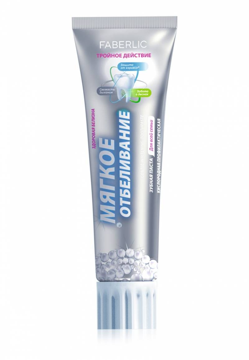 Мягко отбеливает зубы, не повреждая эмаль