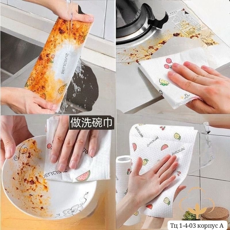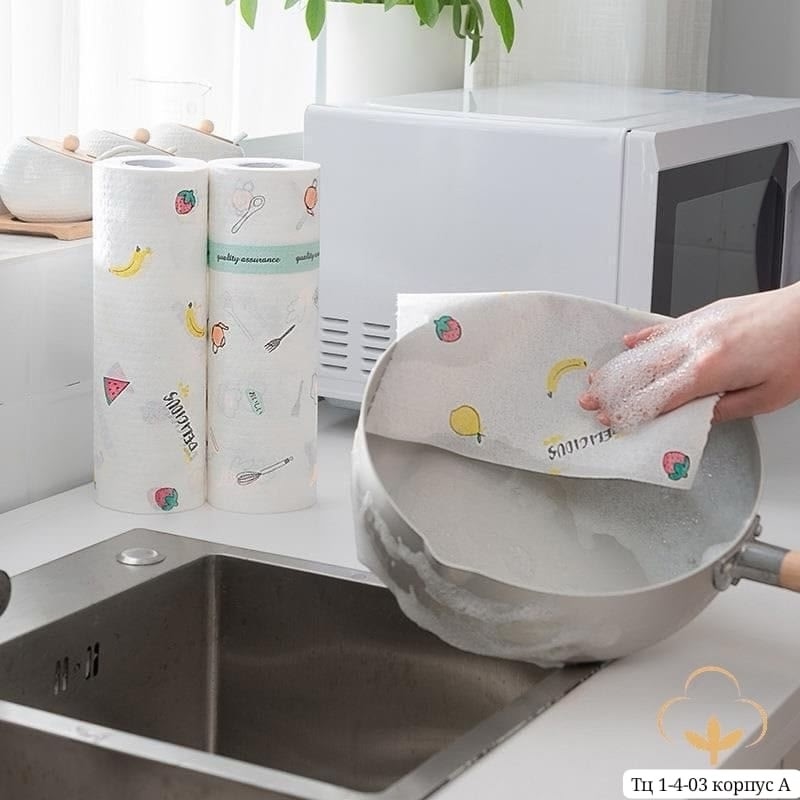 Рулон 50 шт. Многоразовые салфетки для кухни 25х25 см