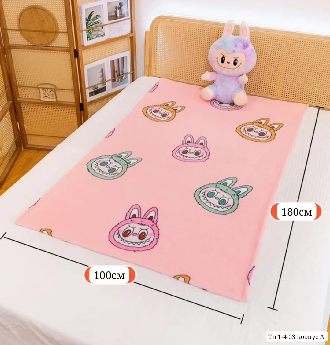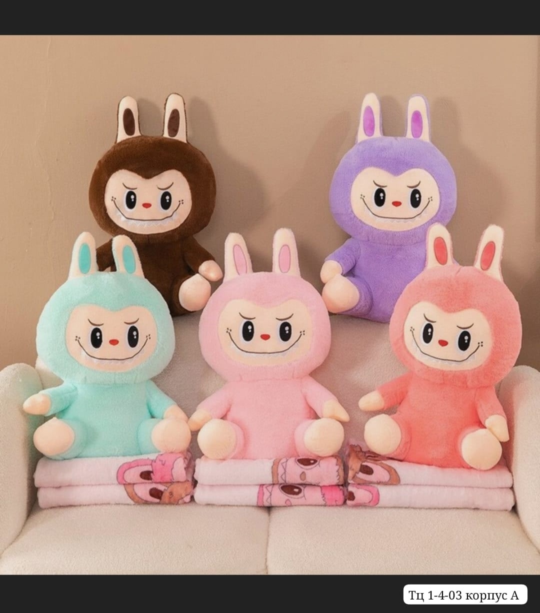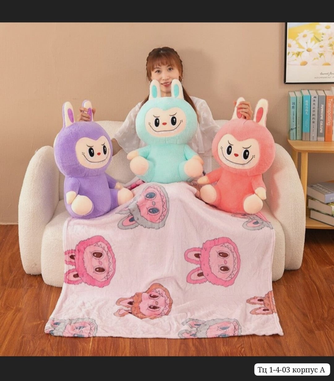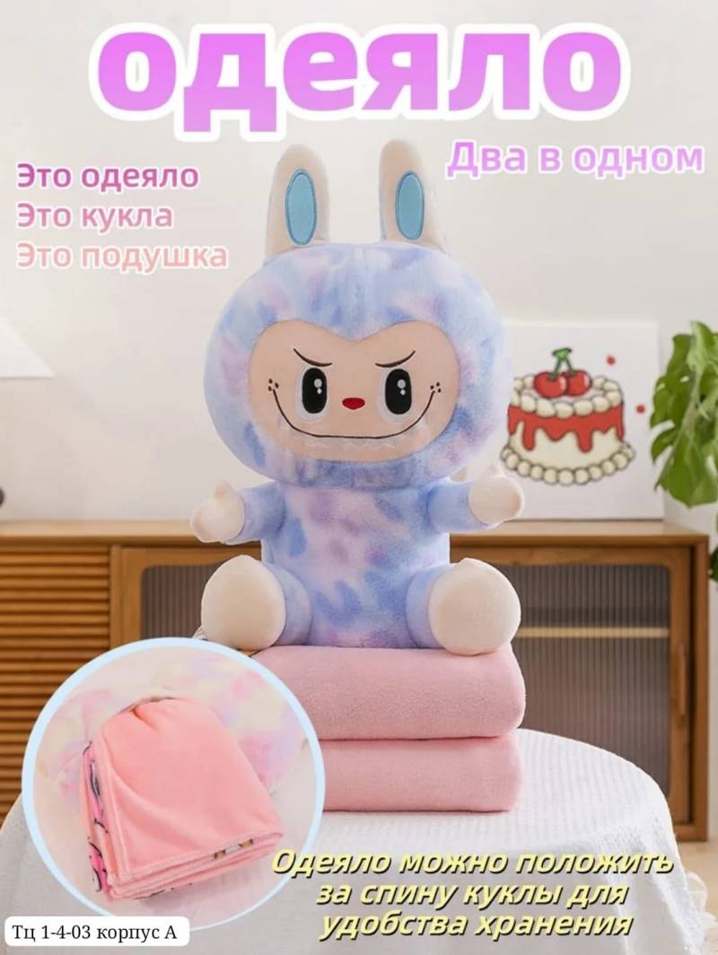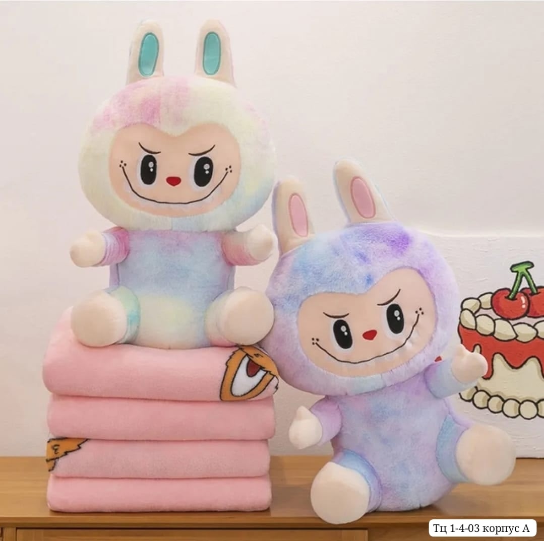 Игрушка Лабубу с пледом внутри. Материал плюш. Размер пледа 100х180 см