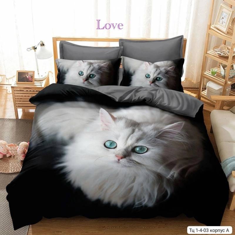 Акция!!! Комплект постельного белья 'Кошки'. Ткань: поплин. Размеры: 1,5сп, 2сп, евро