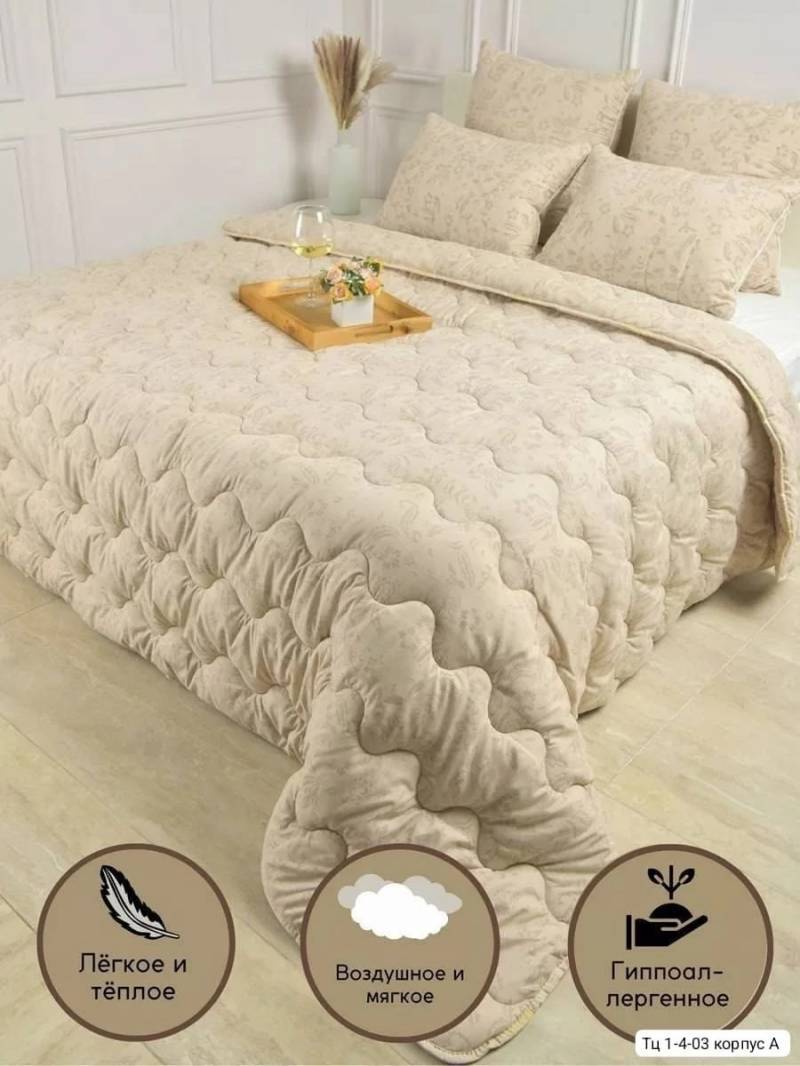 Всесезонное стеганное одеяло Лён. Размеры: 1,5 сп, 2 сп, Евро