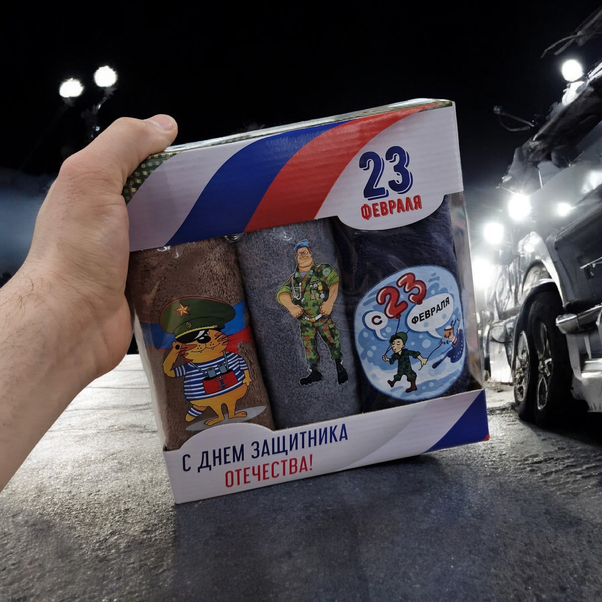 3шт. полотенца из микрофибры 25*25 см в коробке. На 23 февраля