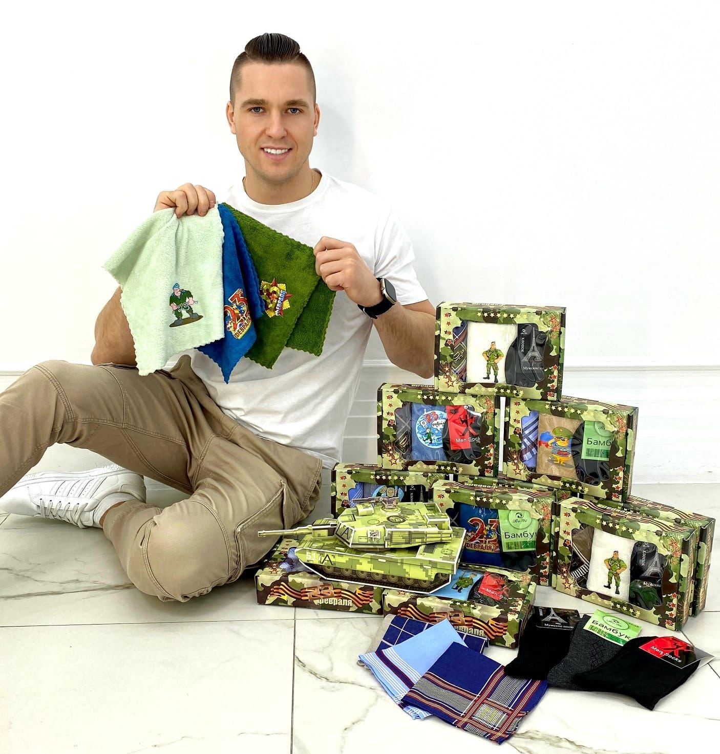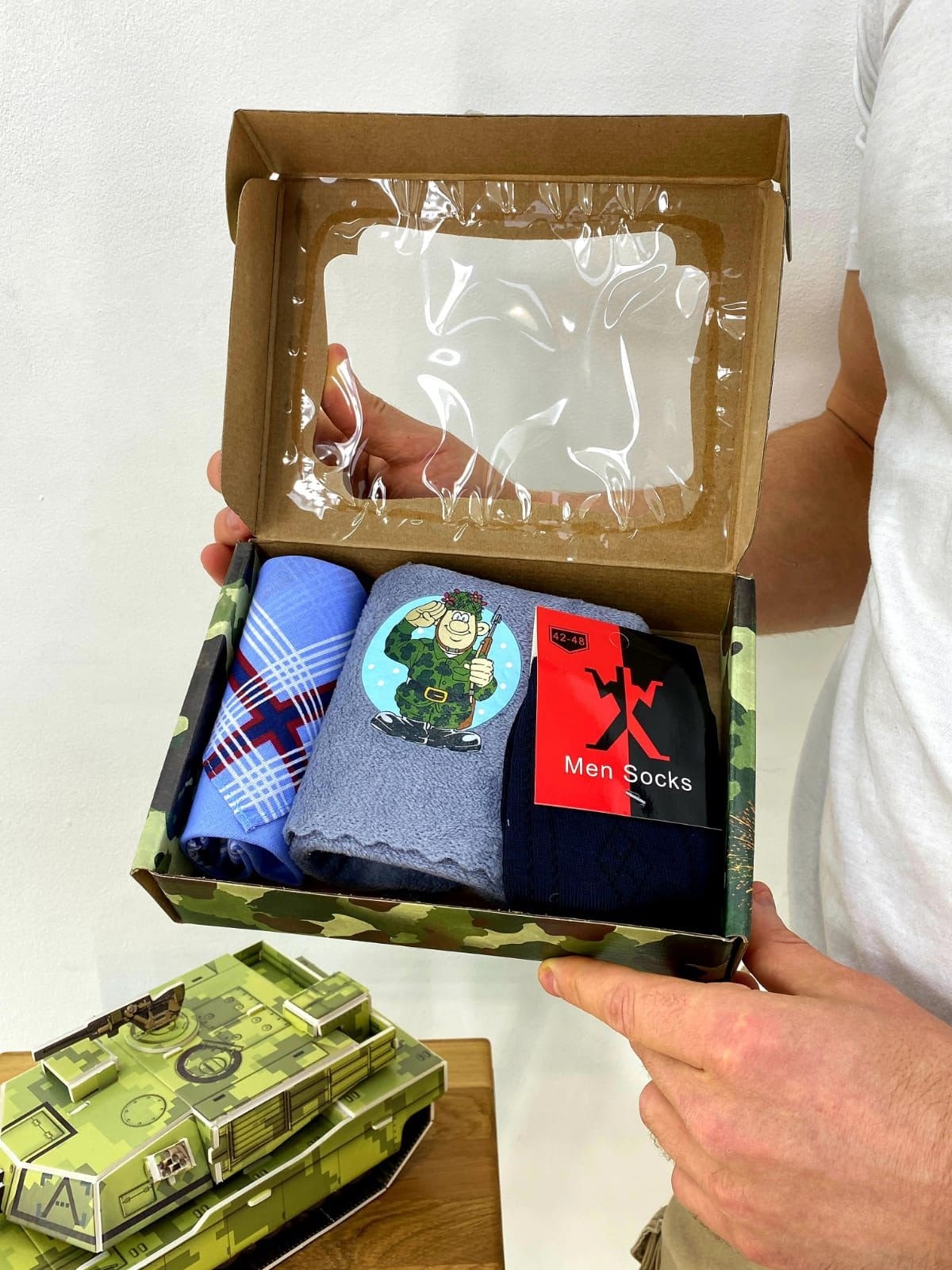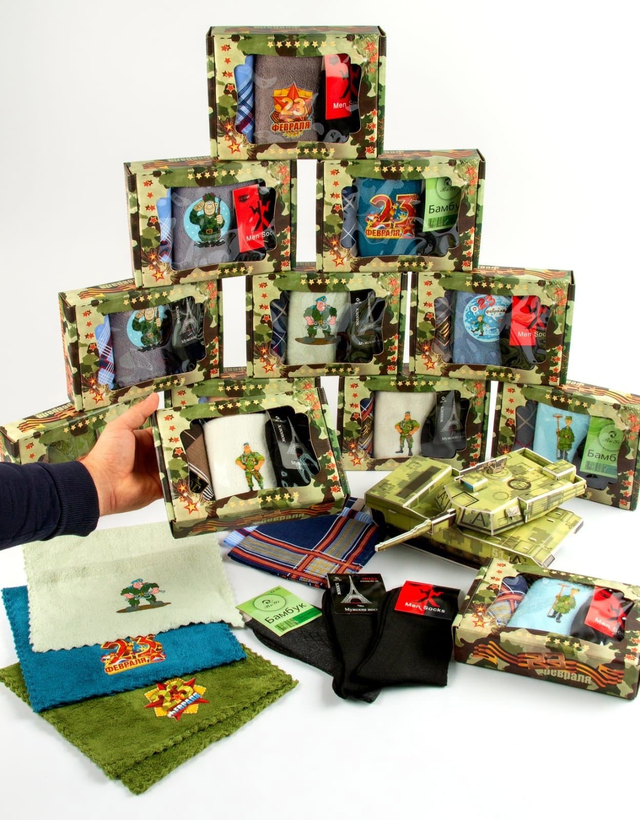 #Набор 3 в 1: Платок 30*30см, Салфетка из микрофибры 25*50см, Носки 1 пара р.41-47. На 23 февраля
