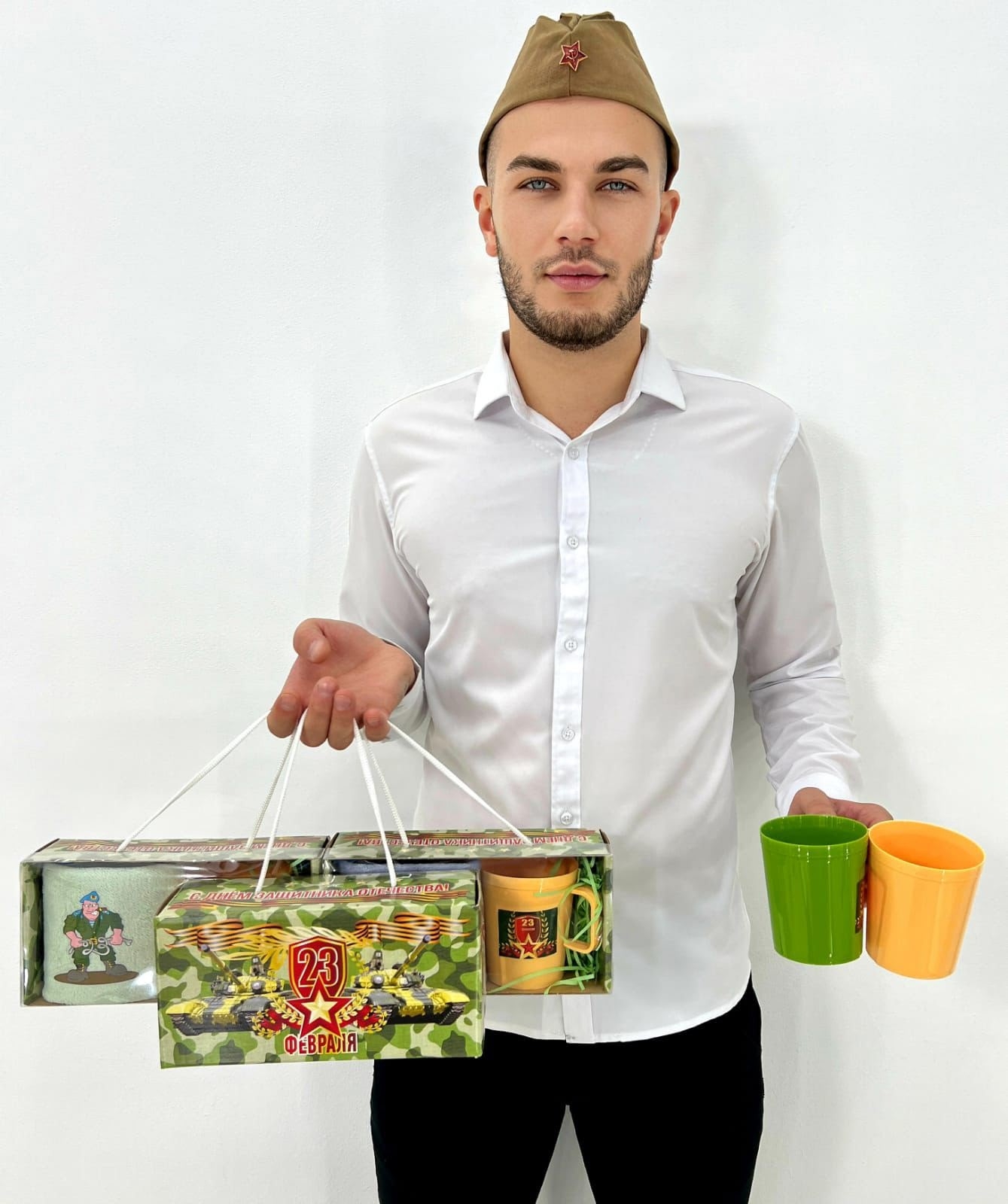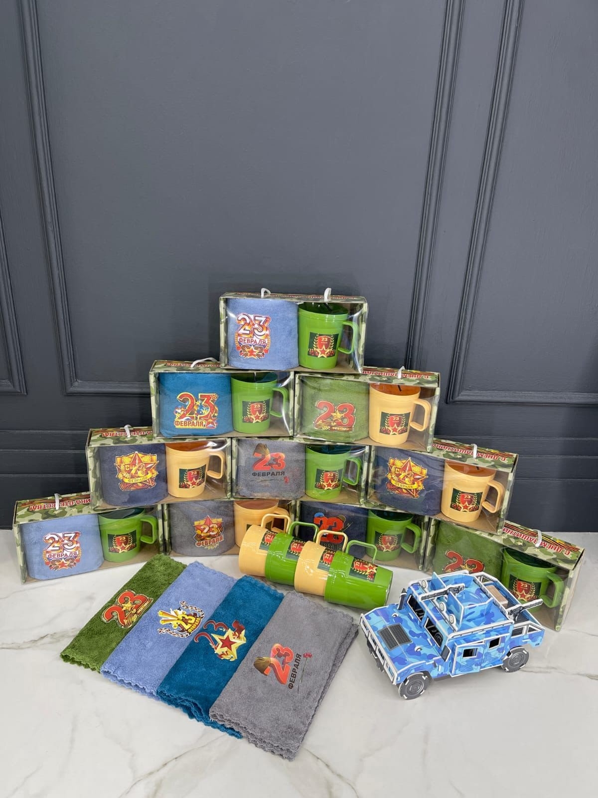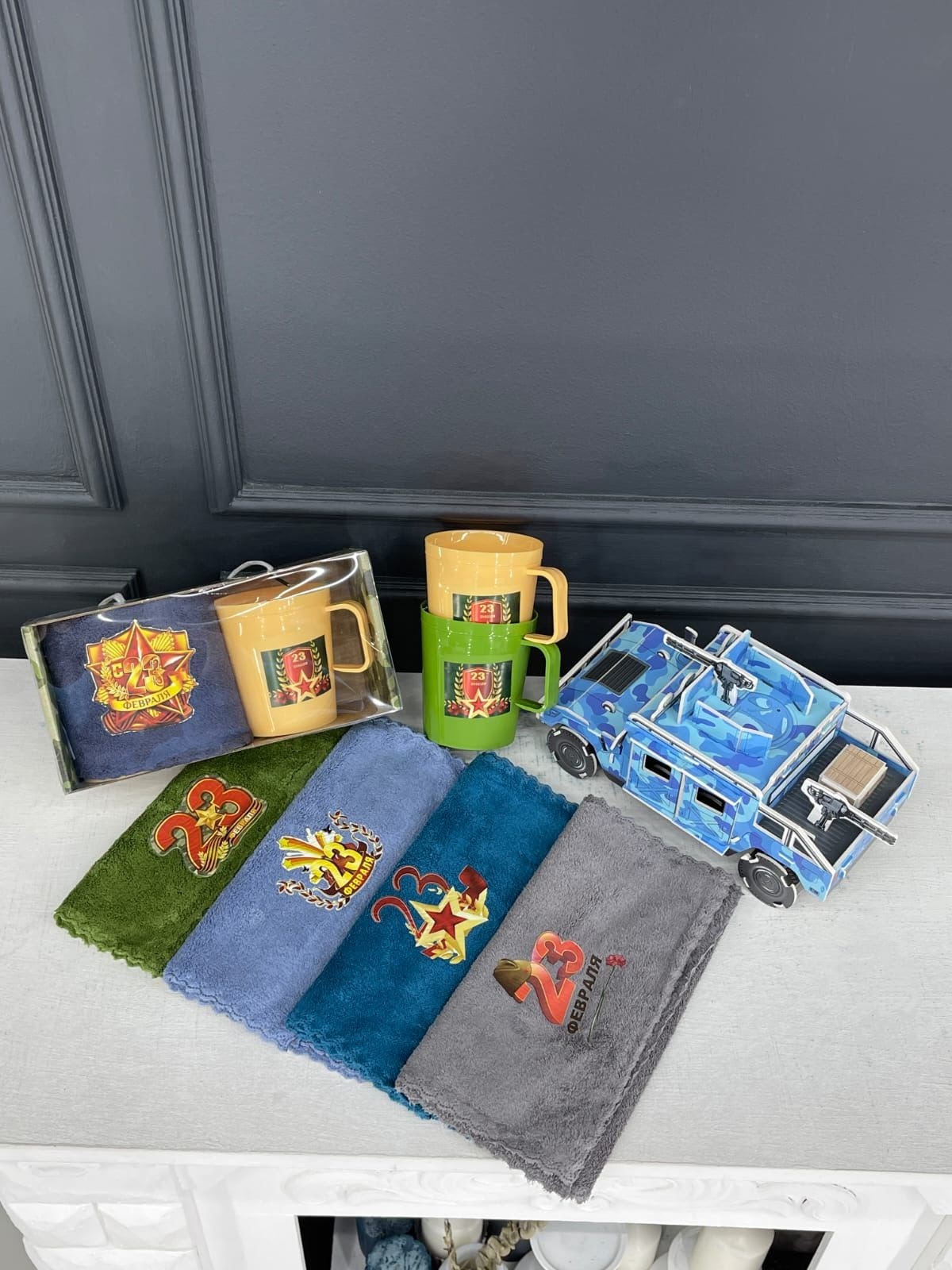 #Набор 1 полотенце из микрофибры 25*50 + кружка пластик. На 23 февраля