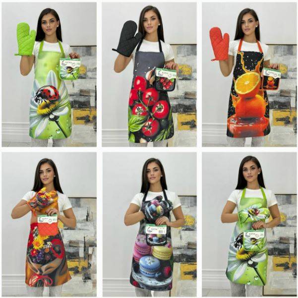 Без выбора! Набор кухонный 3 в 1. Фартук прихватка и варежка