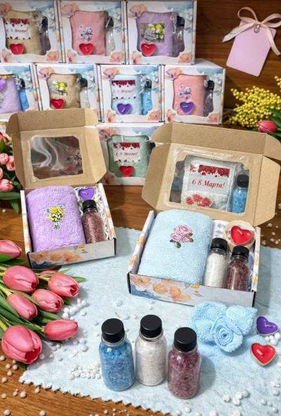 Набор 3 в 1 к 8 марта! Полотеце микрофибра 25*50 см + соль для ванны + ароматическая свеча