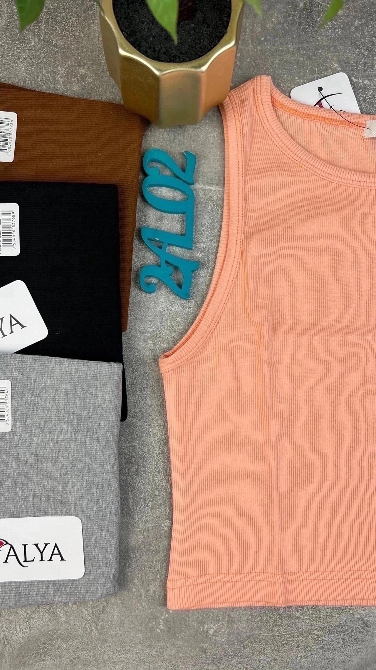 Топ выполнен из высококачественного хлопка Кашкорсе, мелкий рубчик, круглая горловина, оригинальные бретели обработаны широкой бейкой. Турция