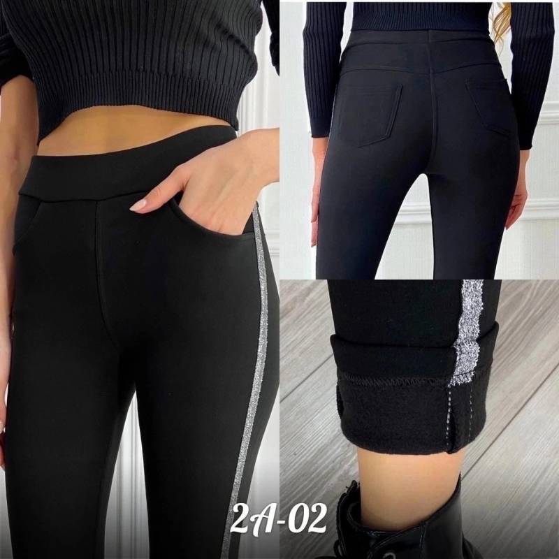 Лосины с карманами с начёсом Тянутся хорошо. Черные Р.: 40-44, 44-48