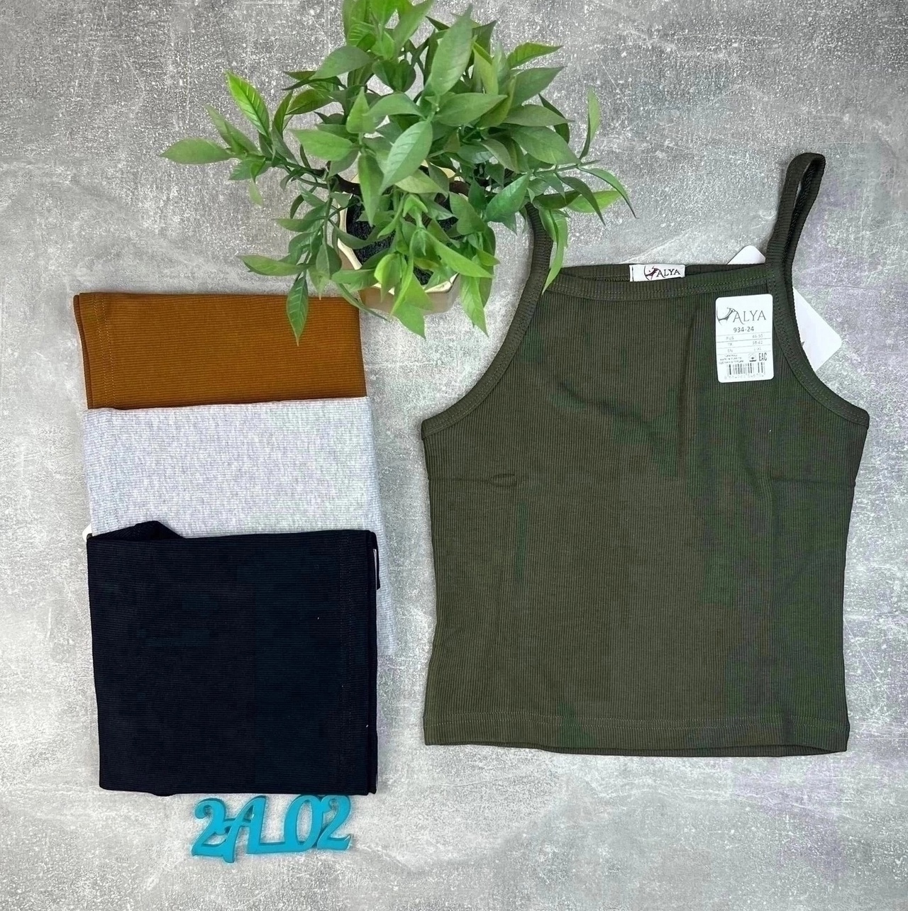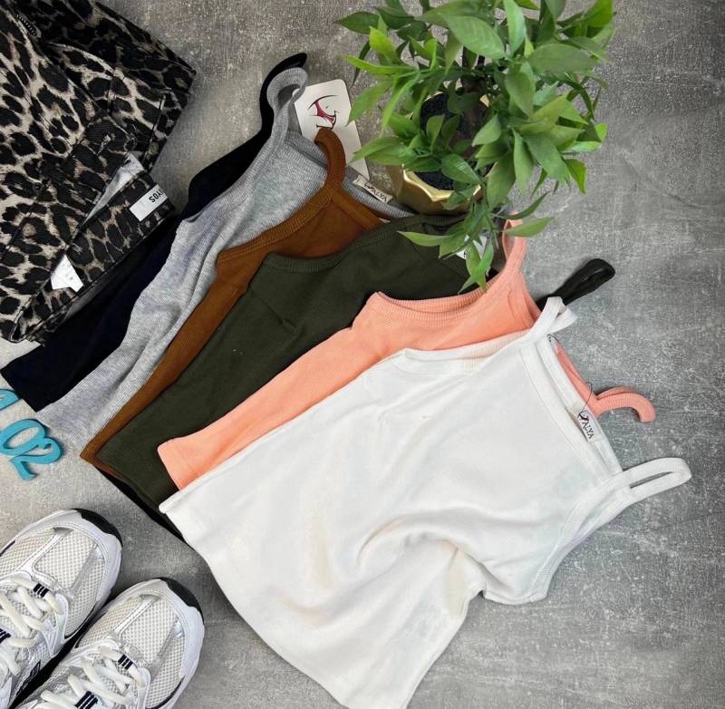 Топ выполнен из высококачественного хлопка Кашкорсе, мелкий рубчик, круглая горловина, оригинальные бретели обработаны широкой бейкой.