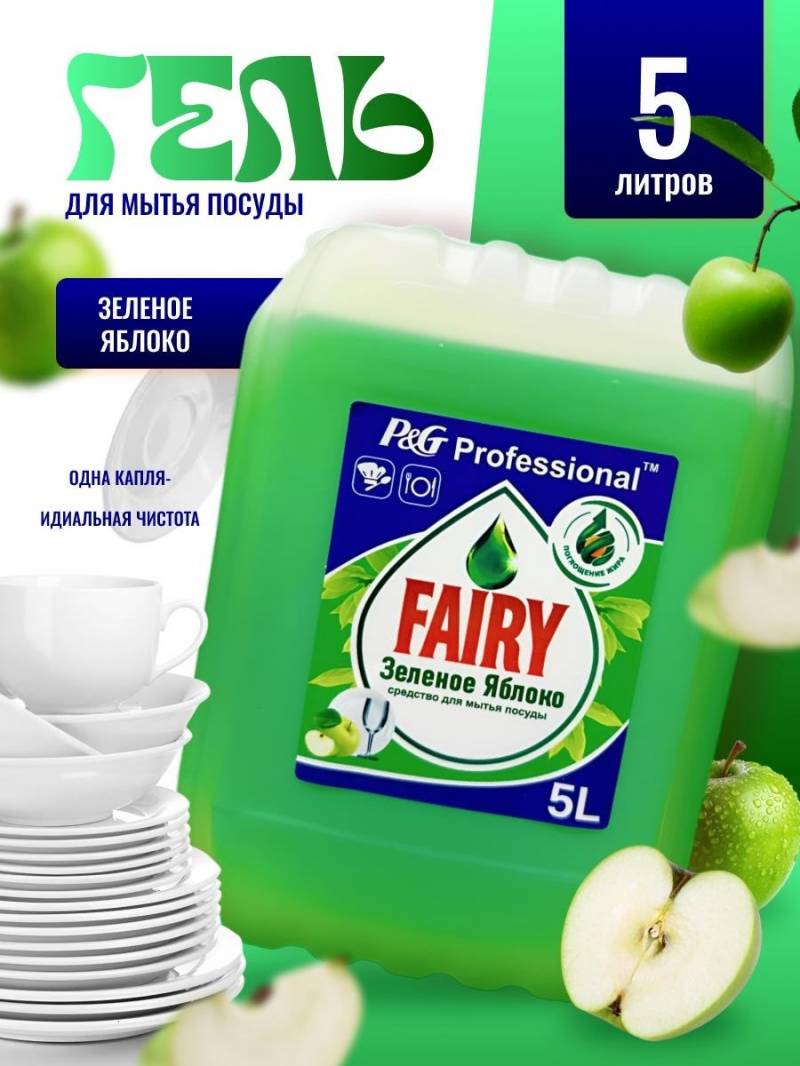 Средство для мытья посуды 5 литров Фэйри Зеленое яблоко